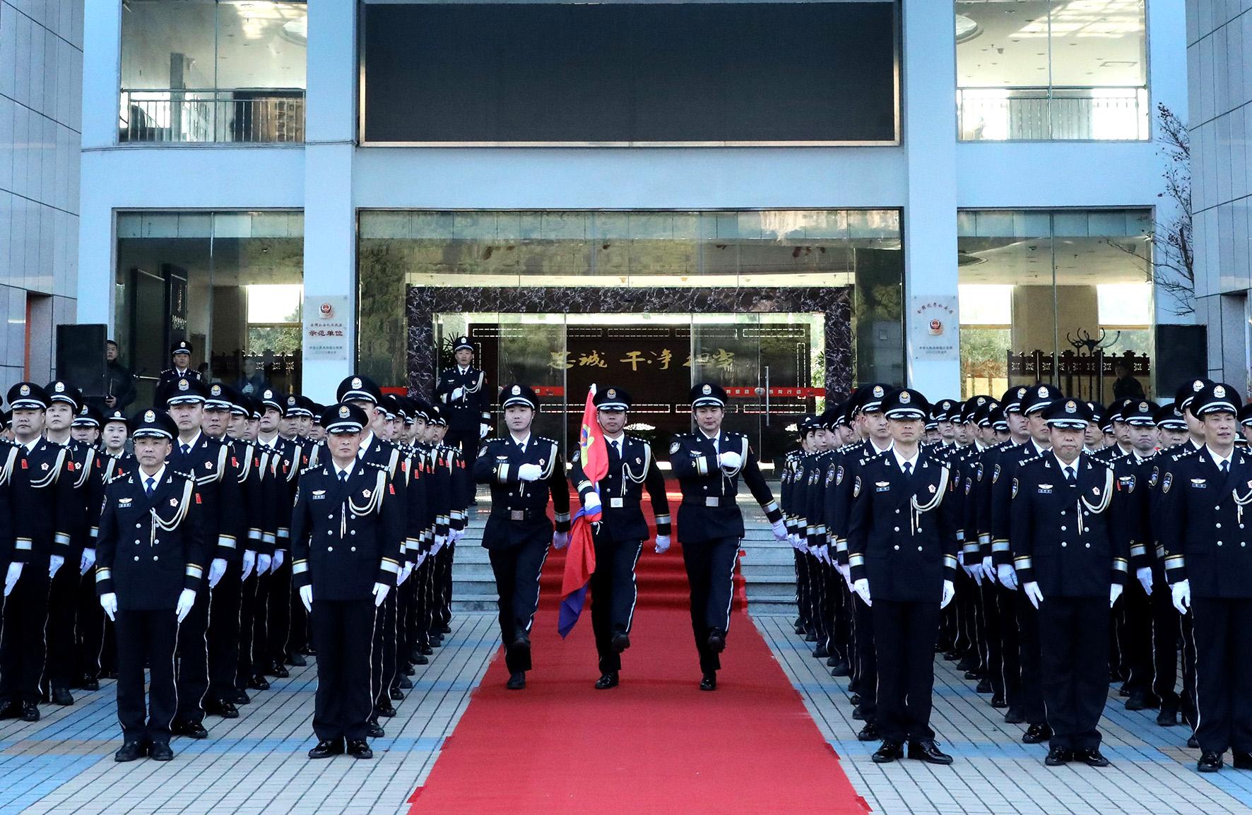 1月10日,貴州省赤水市公安局組織黨員民輔警舉行“奏警歌、升警旗暨公安機(jī)關(guān)人民警察誓詞宣誓儀式”活動(dòng),慶祝第五個(gè)中國(guó)人民警察節(jié)。