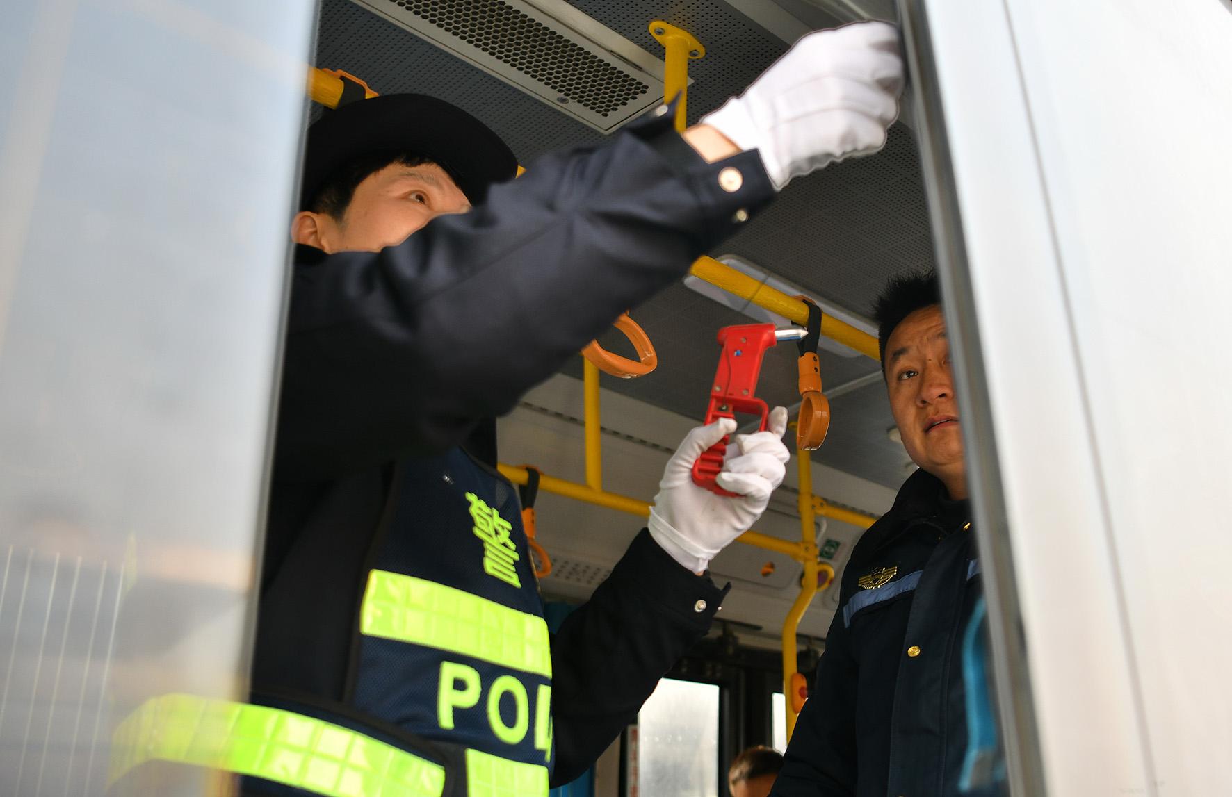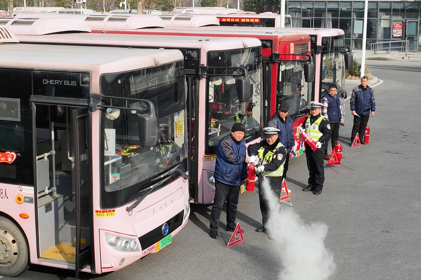1月14日,安徽省蕪湖市公安局交警支隊(duì)鳩江大隊(duì)民警走進(jìn)蕪湖北站公交樞紐,對(duì)參與“春運(yùn)”的50余輛公交車(chē)進(jìn)行安全大檢查。
