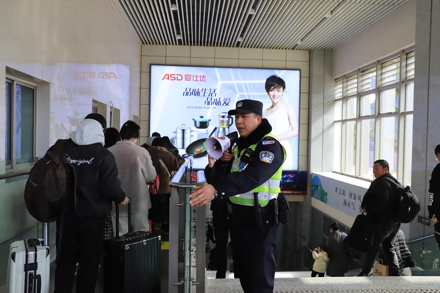 1月14日,春運(yùn)首日,南京鐵路公安處泰州站派出所強(qiáng)化站區(qū)和線(xiàn)路治安管控,全力以赴護(hù)航旅客安全出行。