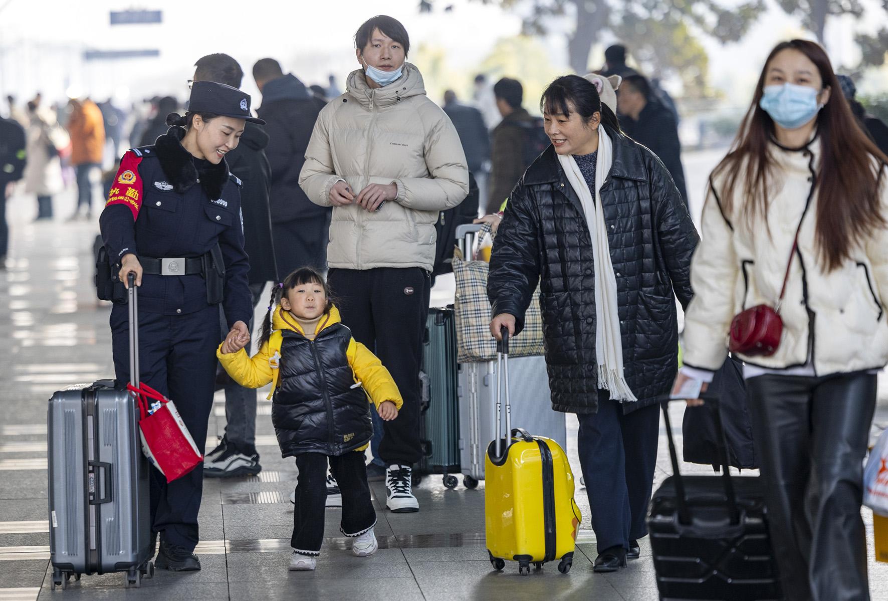 1月14日,襄陽(yáng)鐵路公安處民警在襄陽(yáng)東站執(zhí)勤,服務(wù)旅客。
