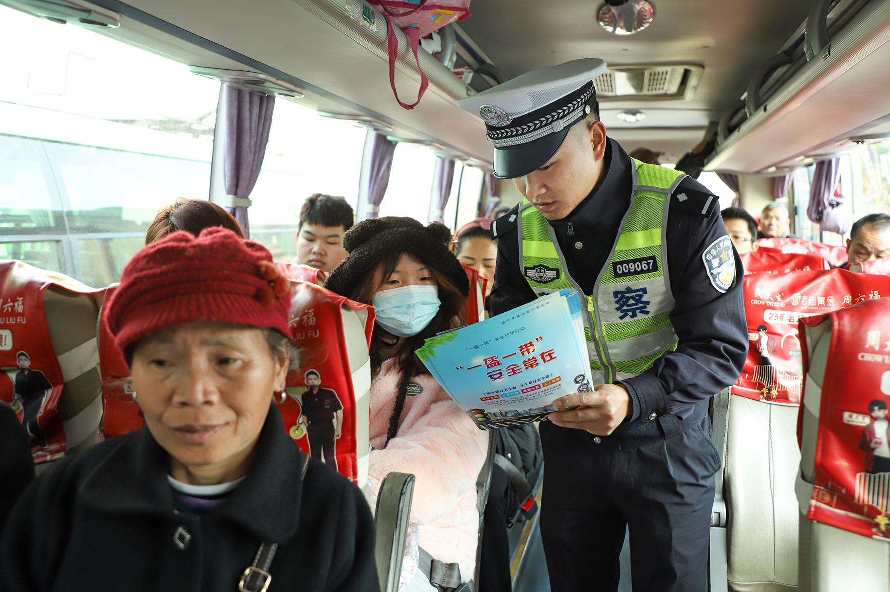 1月14日,浙江省岱山縣公安局交警大隊(duì)民警輔警來(lái)到汽車(chē)站、客運(yùn)碼頭,向駕駛員、旅客發(fā)放春運(yùn)宣傳資料,講解道路交通安全知識(shí)。