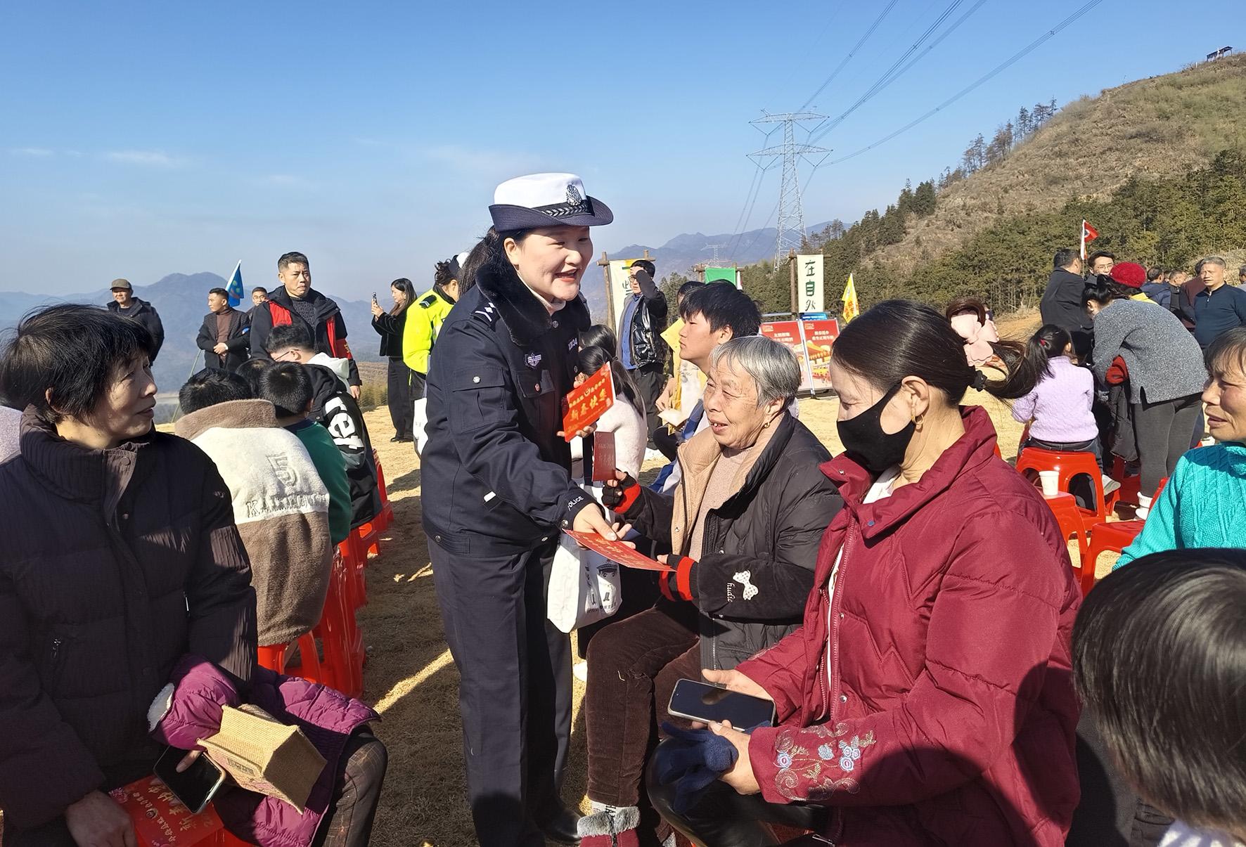 1月19日,安徽省宿松縣公安局交警大隊(duì)利用鄉(xiāng)村“村晚”演出契機(jī),向村民開展交通安全宣傳。