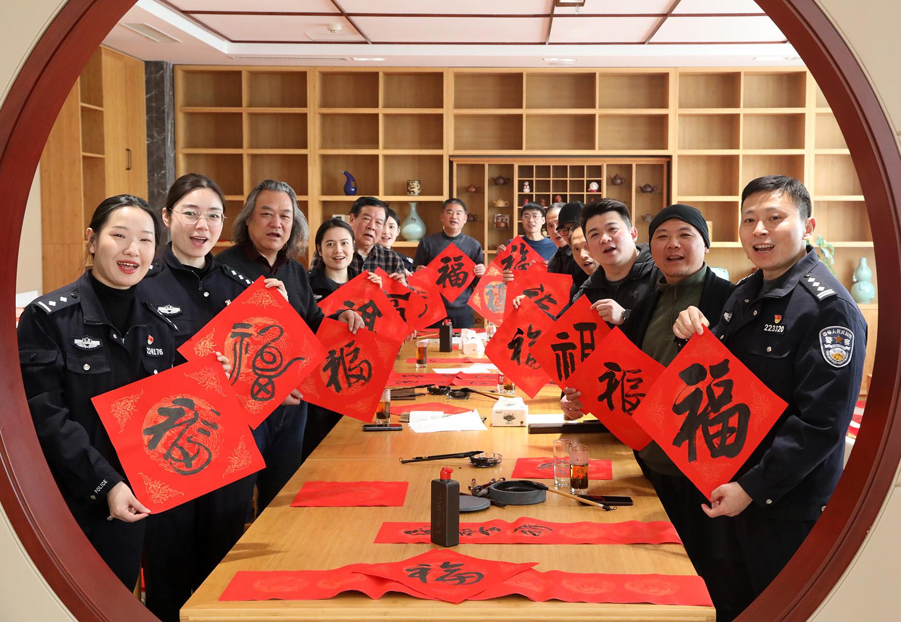 為弘揚中華優(yōu)秀傳統(tǒng)文化,豐富警營文化生活,1月21日,江蘇省宜興市公安局丁山派出所開展“妙筆迎新春 潑墨送祝?!毙麓簳疫M(jìn)警營活動。