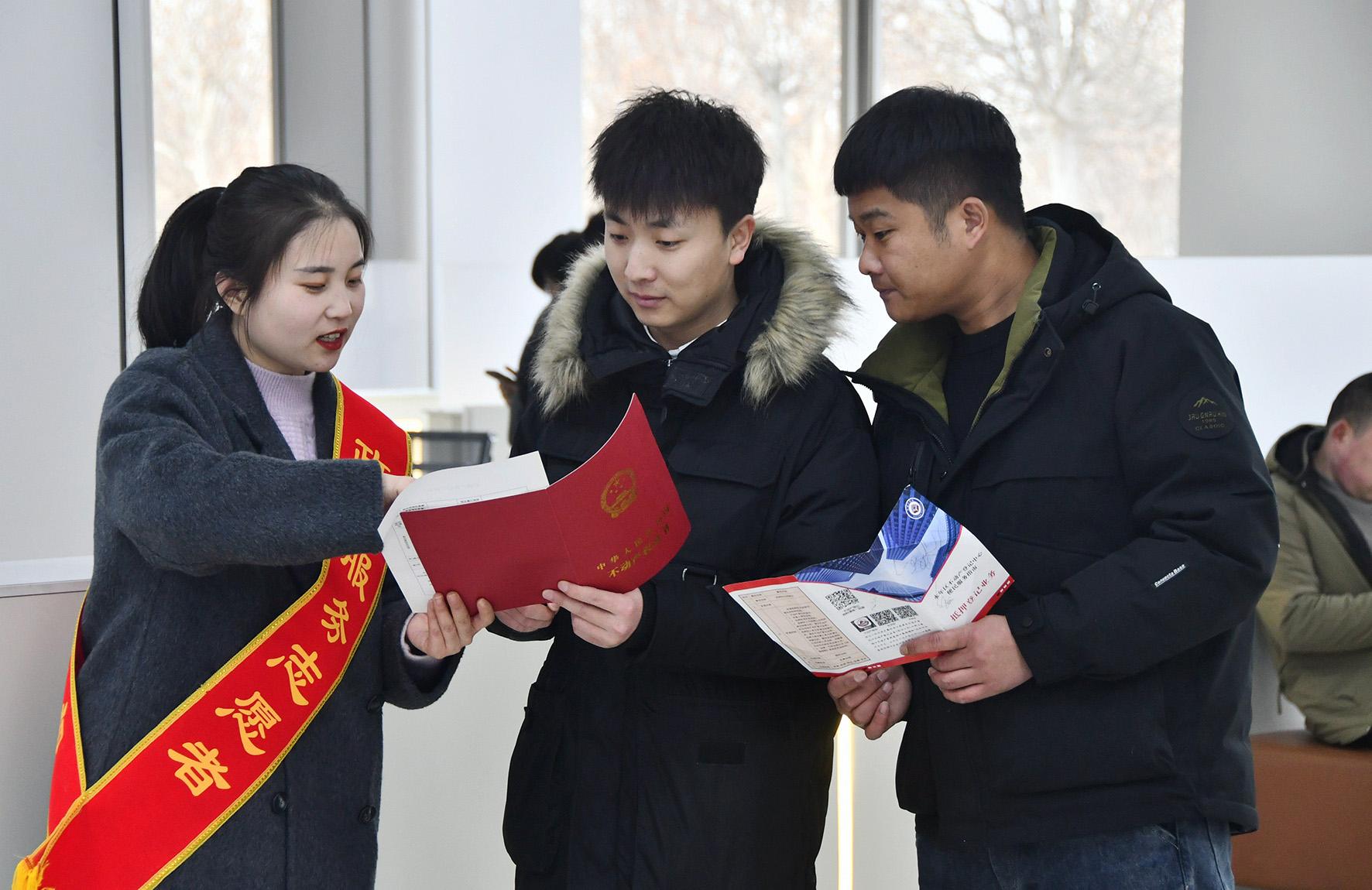 圖為2月6日,黨員志愿者正在幫助居民辦理不動(dòng)產(chǎn)登記業(yè)務(wù)。