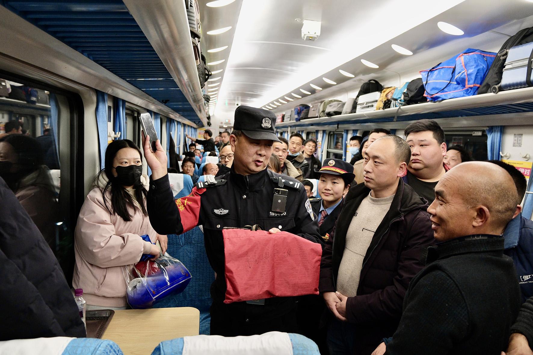 2月13日,武漢鐵路公安局襄陽公安處乘警支隊民警在K644次列車夜間行車期間,針對性開展防盜、防騙知識宣傳,讓旅客們提高安全防范意識。