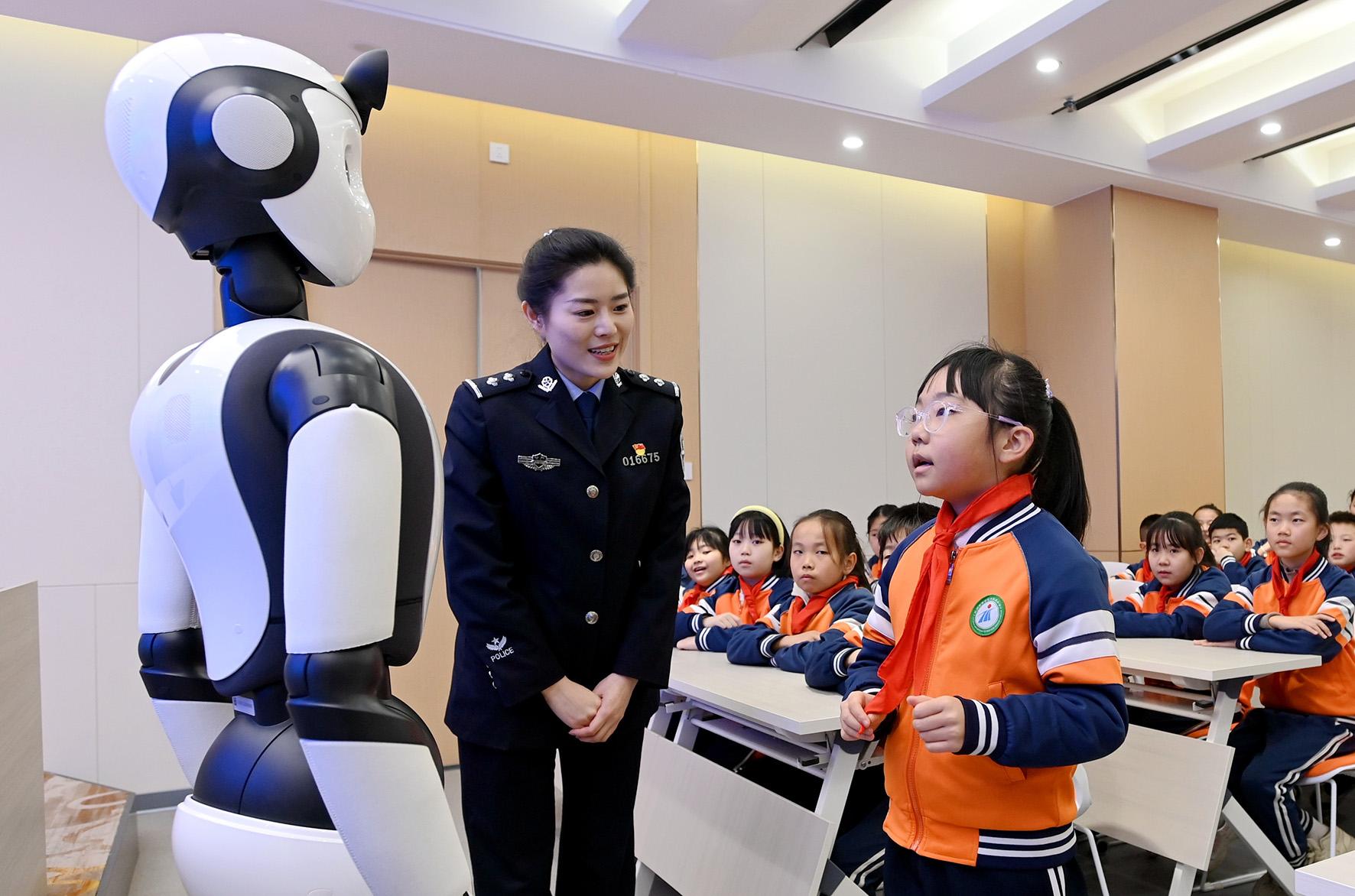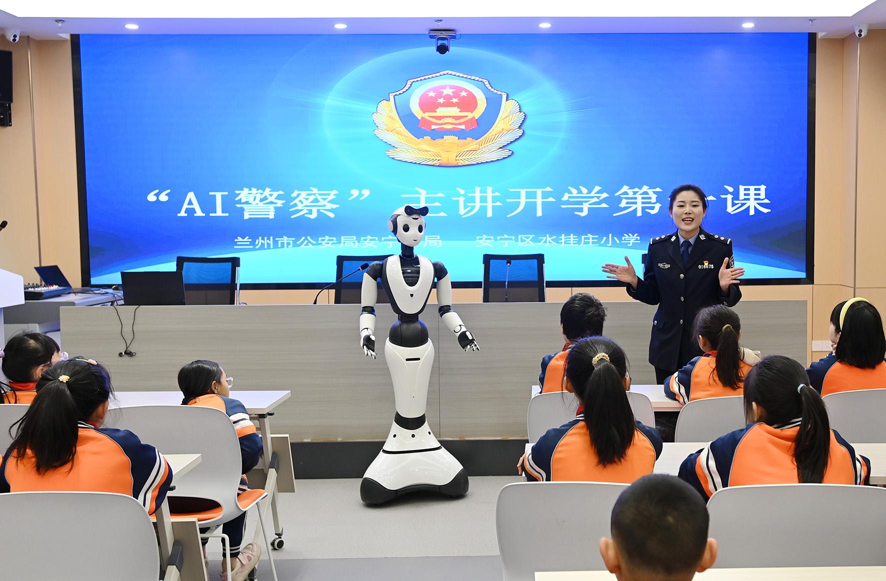 2月25日,甘肅省蘭州市公安局安寧分局“AI警察”——安小寧智能交互式機(jī)器人警官走進(jìn)水掛莊小學(xué)“開學(xué)第一課”大講堂,以童趣化智能交互式體驗(yàn)方式為師生講解校園安全、自我保護(hù)、反詐禁毒等知識(shí)。