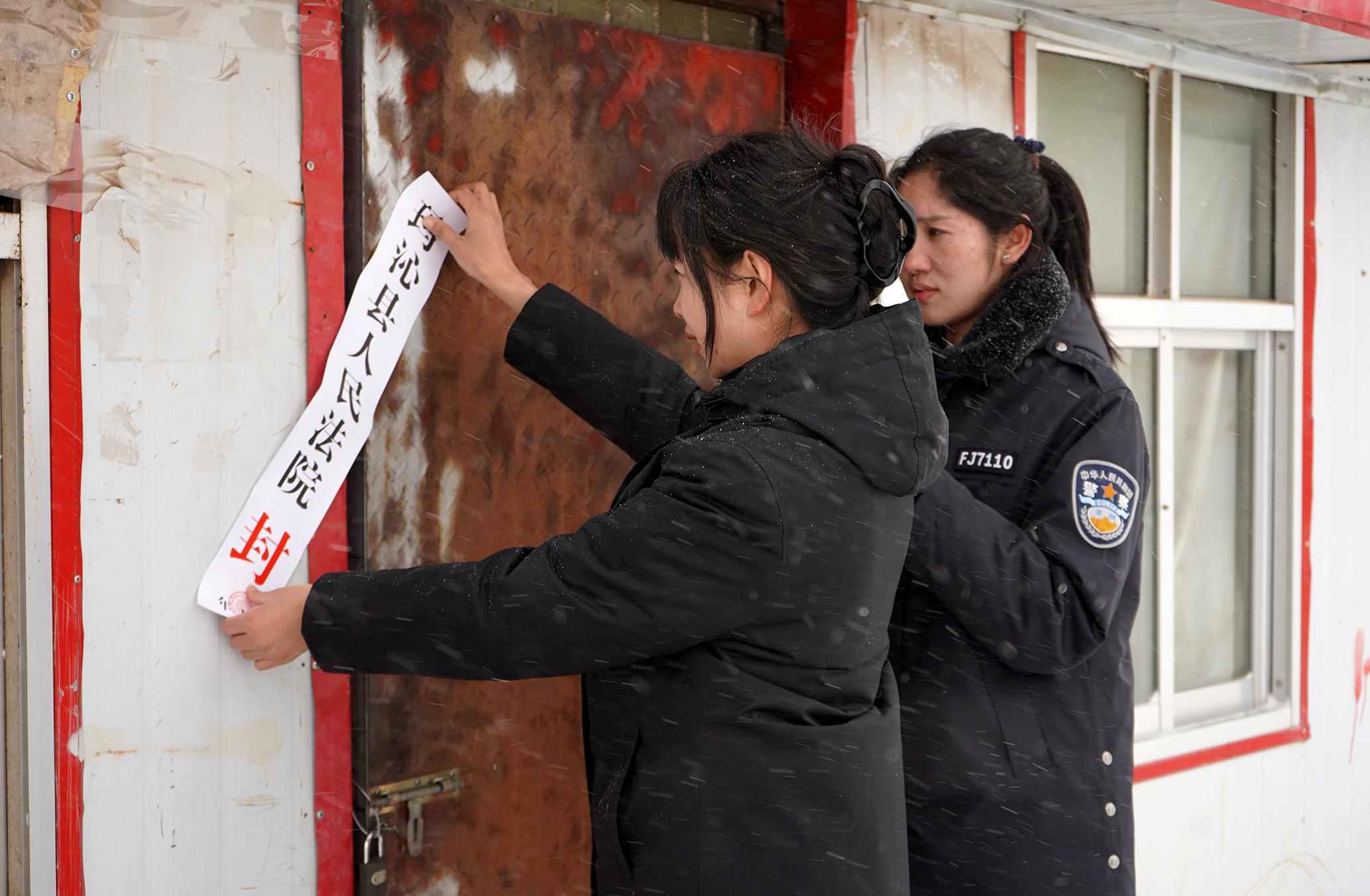 3月6日,青海省果洛州瑪沁縣人民法院執(zhí)行干警冒雪前往牧區(qū)查封處理房屋。