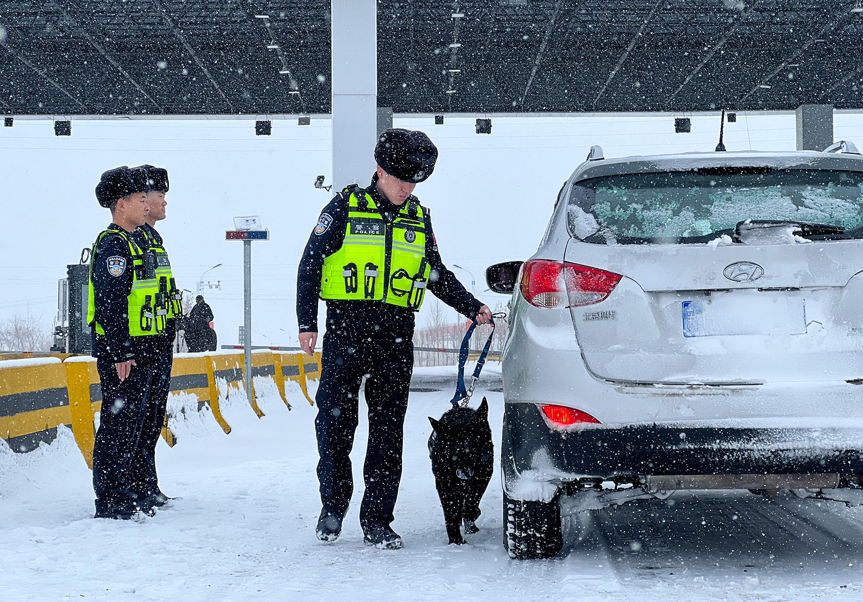 3月12日,新疆出入境邊防檢查總站阿勒泰邊境管理支隊塘巴勒邊境檢查站民警在風雪中堅守崗位,嚴格落實進出邊境管理區(qū)24小時雙向查緝制度,做到“不漏一車、不漏一人”。