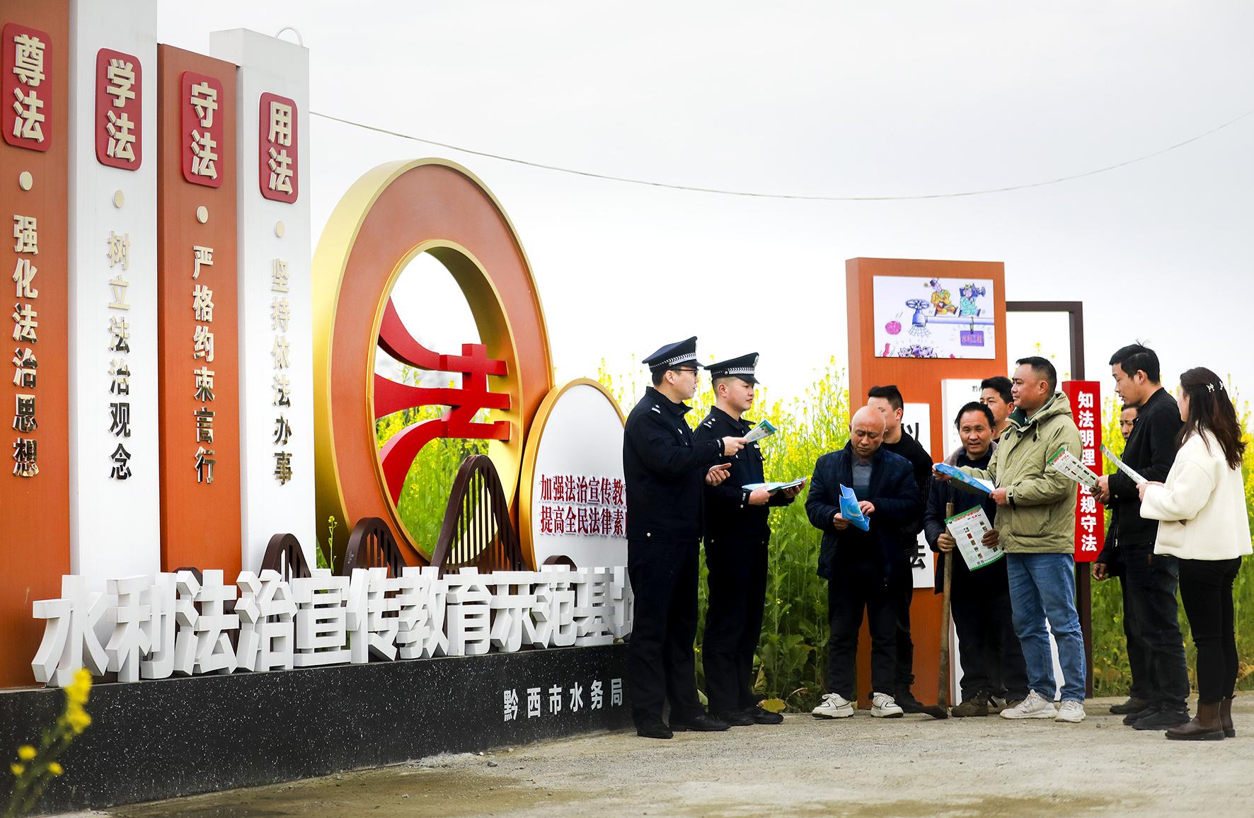 3月20日,貴州省黔西市公安局在轄區(qū)金碧鎮(zhèn)高標(biāo)準(zhǔn)農(nóng)田里,開展“法治宣傳進田間”迎接世界水日活動。