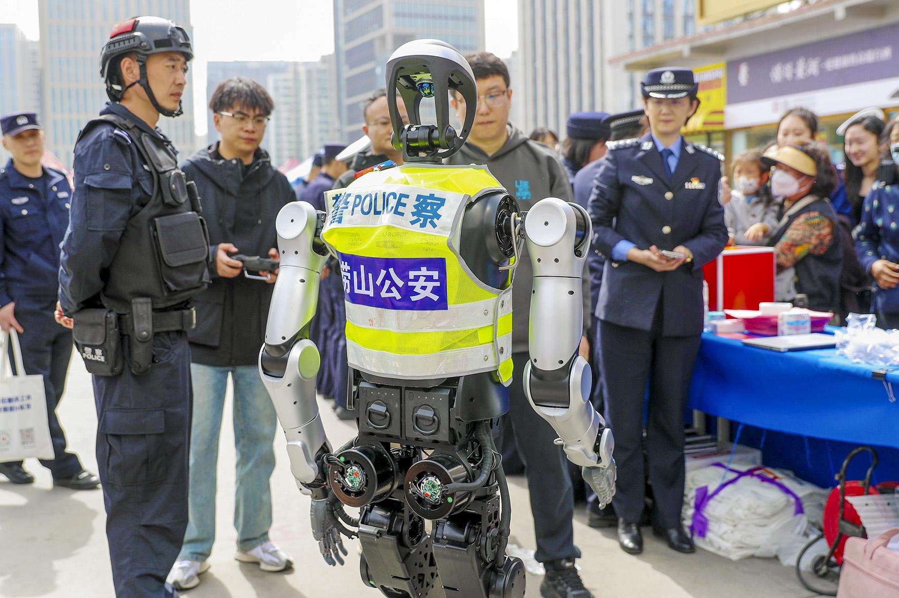 3月24日,山東省青島市公安局在汽車(chē)東站啟動(dòng)流動(dòng)人口服務(wù)管理宣傳周活動(dòng),智能機(jī)器人“平安”亮相活動(dòng)現(xiàn)場(chǎng),提供精準(zhǔn)政策解答。