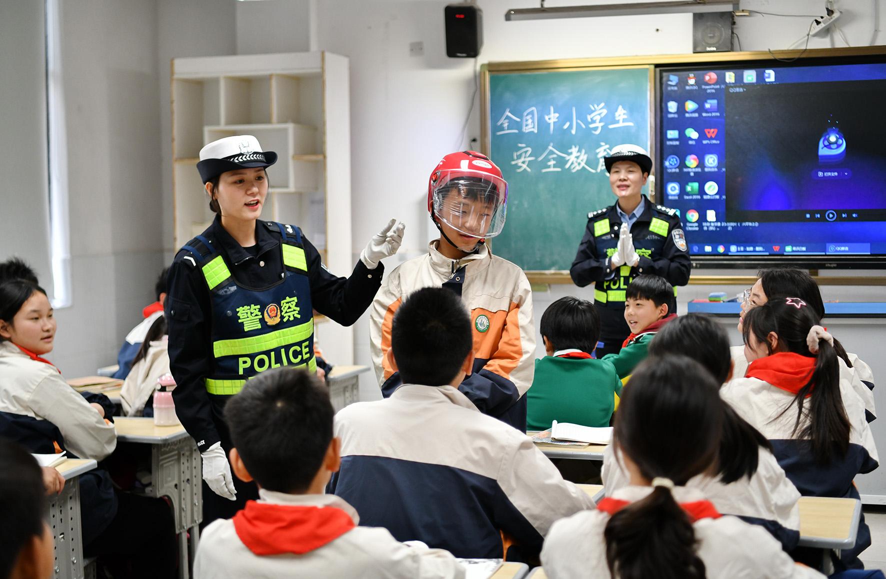 3月27日,在第30個“全國中小學(xué)生安全教育日”來臨之際,福建省福州市鼓樓區(qū)交警大隊民警聯(lián)合社區(qū)志愿者,走進(jìn)斗南小學(xué)開展“平安伴我成長 交通安全宣教”主題教育活動。
