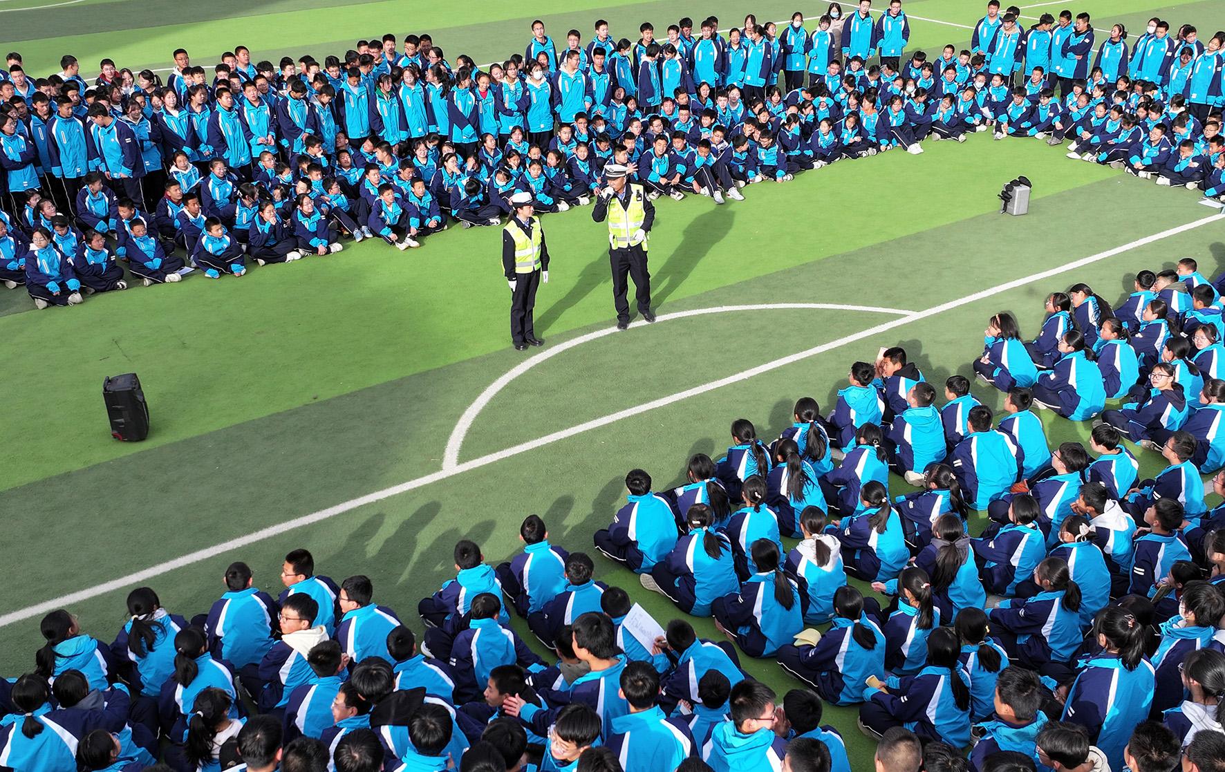 3月27日,甘肅省臨澤縣公安局交警大隊民警走進(jìn)臨澤縣第二中學(xué),向?qū)W生們普及交通安全知識。
