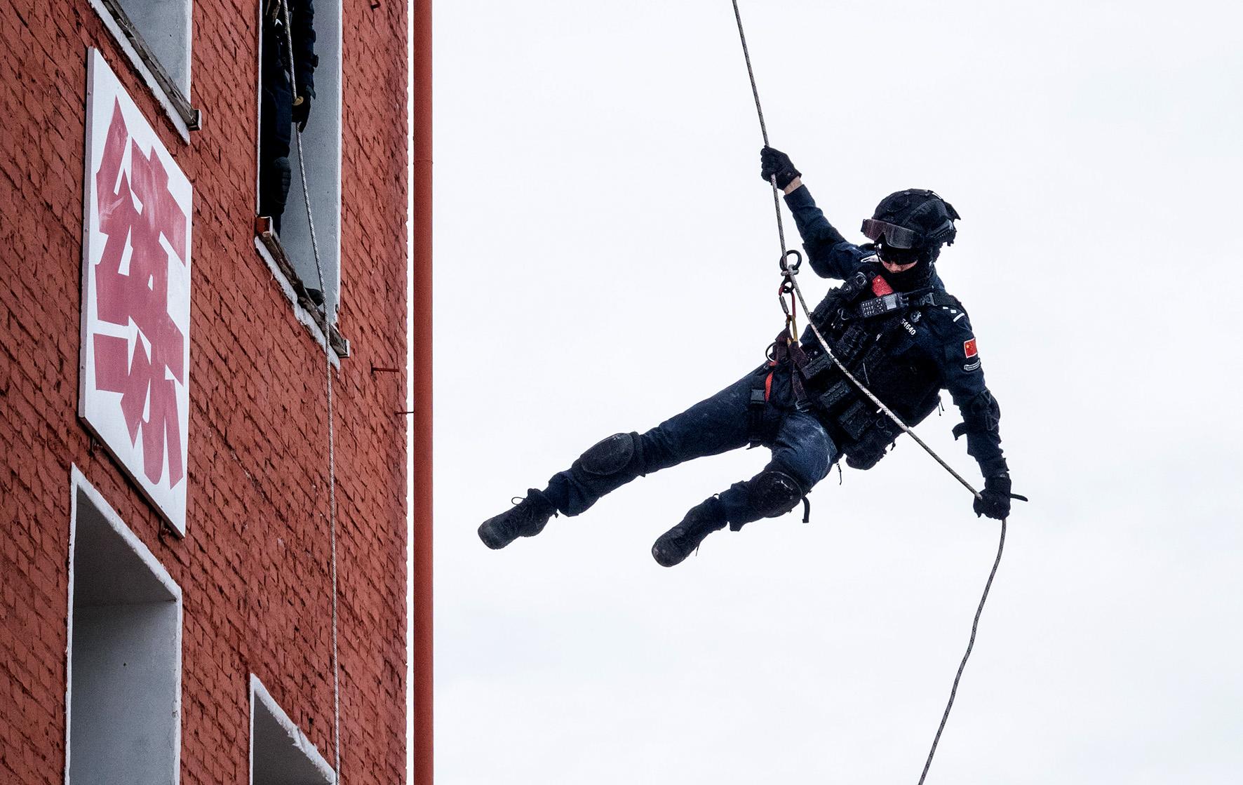 4月8日,內(nèi)蒙古出入境邊防檢查總站巴爾虎突擊隊在呼倫貝爾某訓(xùn)練場開展立體化邊境封控演練,演練設(shè)置樓道搜索、密閉空間對抗等7個高難課目,從嚴從難、緊貼實戰(zhàn),錘煉隊員們綜合素質(zhì)。