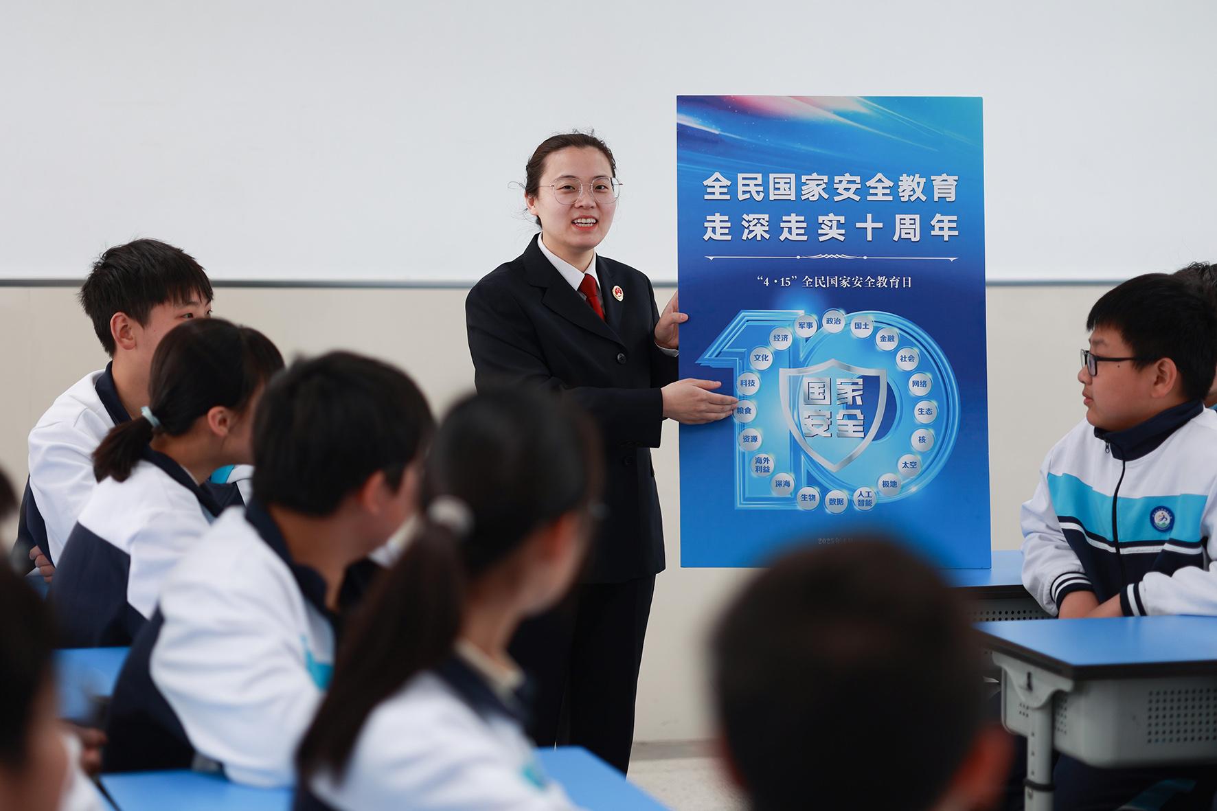 4月14日,江蘇省興化市司法局法治宣講員在興化市第一中學(xué)給學(xué)生們講解全民國(guó)家安全教育日相關(guān)知識(shí)。