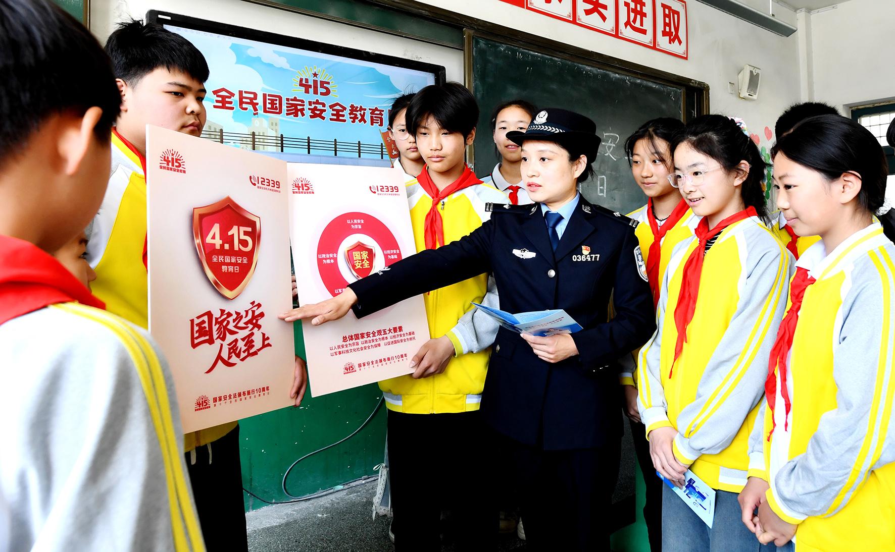 4月11日,安徽省阜南縣公安局組織刑偵、禁毒和巡防等警種走進(jìn)中崗中學(xué)開(kāi)展全民國(guó)家安全教育日活動(dòng)。