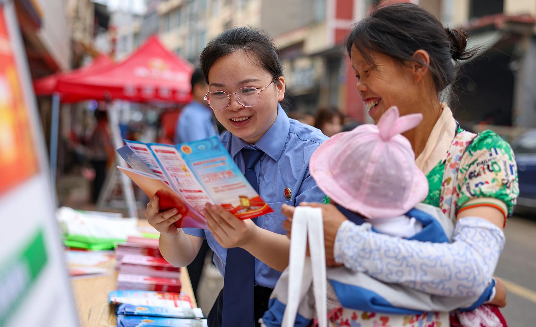 5月14日,貴州省銅仁市玉屏侗族自治縣人民檢察院聯(lián)合湖南省懷化市新晃侗族自治縣人民檢察院在玉屏侗族自治縣田坪鎮(zhèn)集貿(mào)市場,開展民法典進鄉(xiāng)村普法宣傳活動。