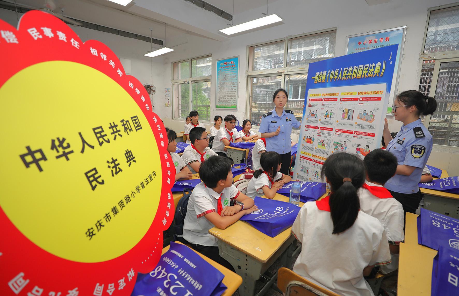 5月15日,安徽省安慶市大觀區(qū)司法局工作人員走進(jìn)集賢路小學(xué)開(kāi)展“‘民法’宣傳進(jìn)課堂‘典’亮校園護(hù)成長(zhǎng)”主題宣傳活動(dòng)。