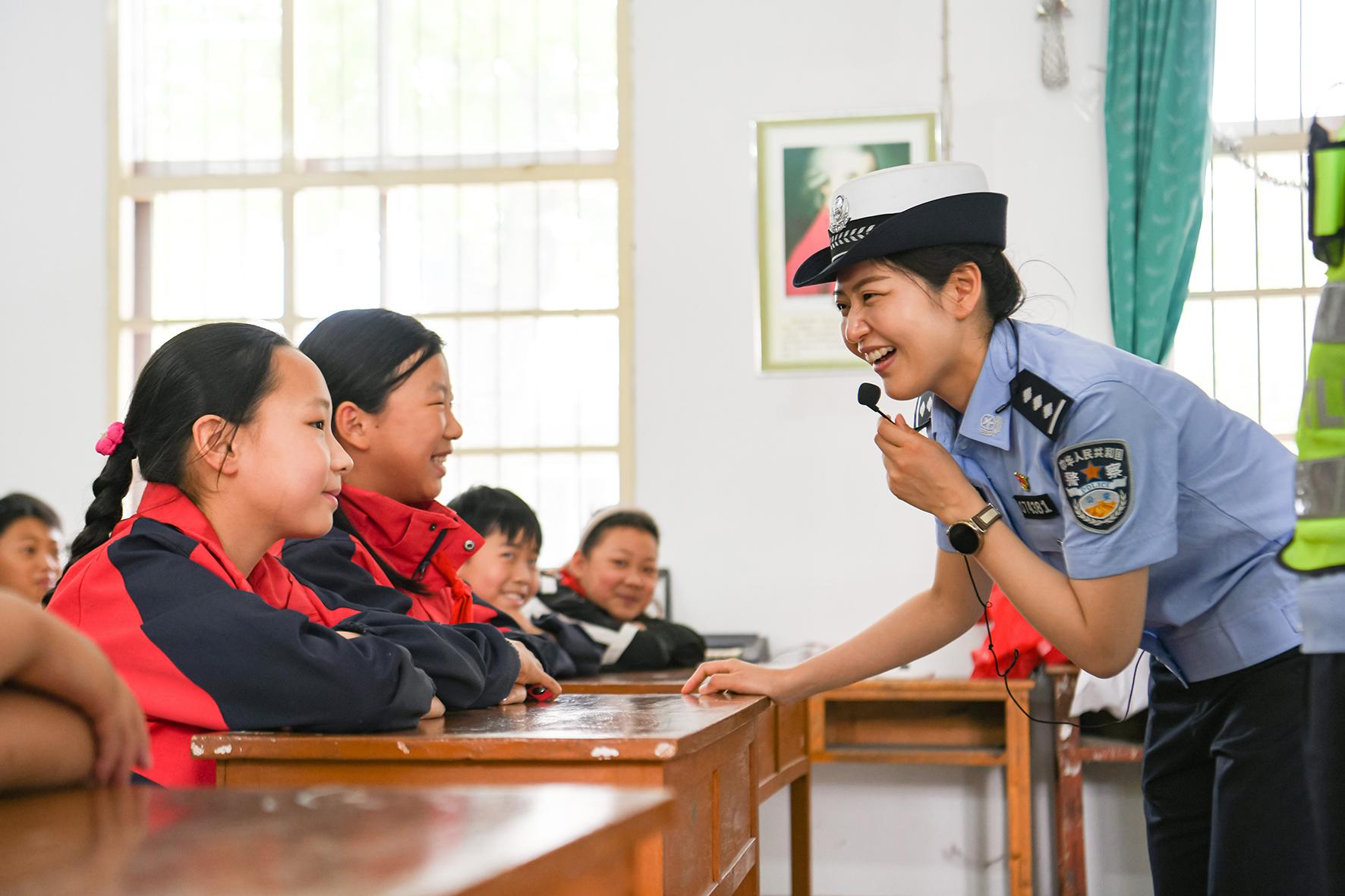 5月28日,安徽省馬鞍山市含山縣公安局交管大隊民警走進隱龍小學為學生講解交通安全知識。