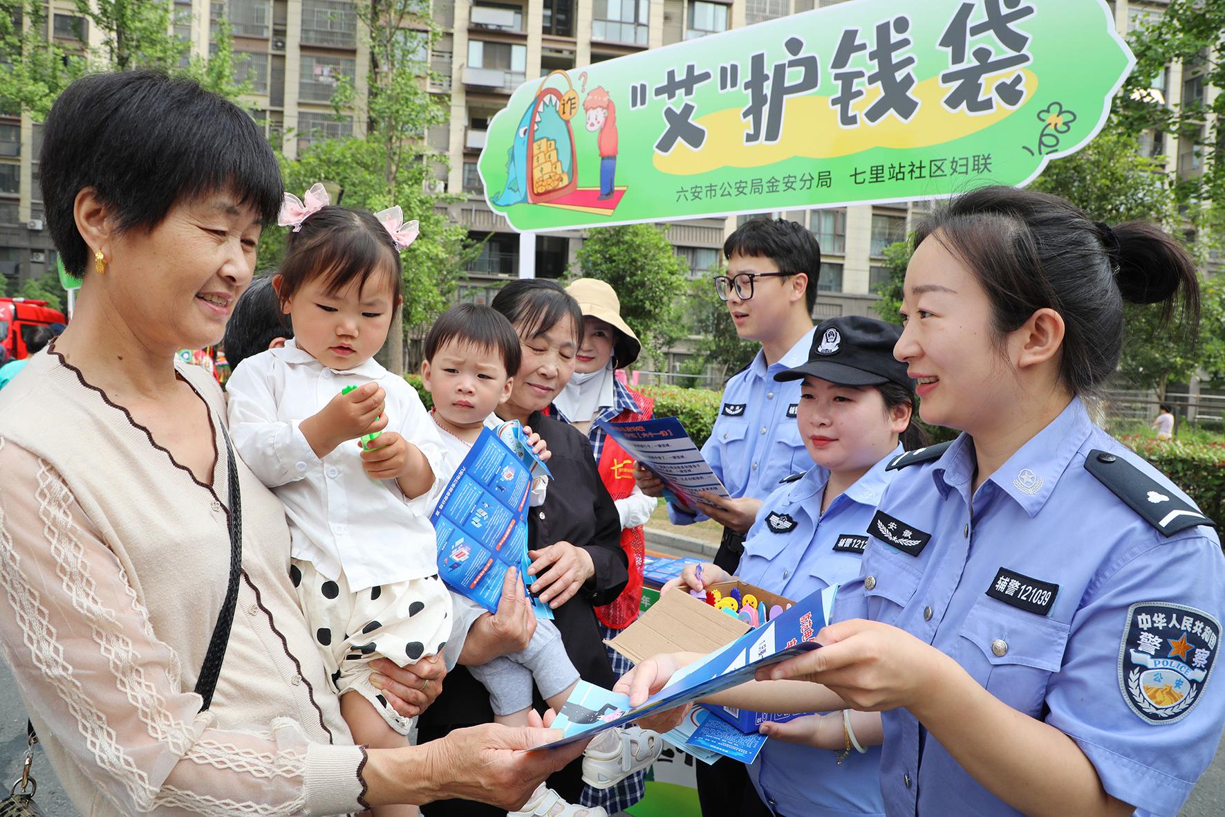 5月28日,安徽省六安市公安局金安分局民輔警在轄區(qū)東市街道七里站社區(qū)為居民普及防范電信網(wǎng)絡(luò)詐騙知識。