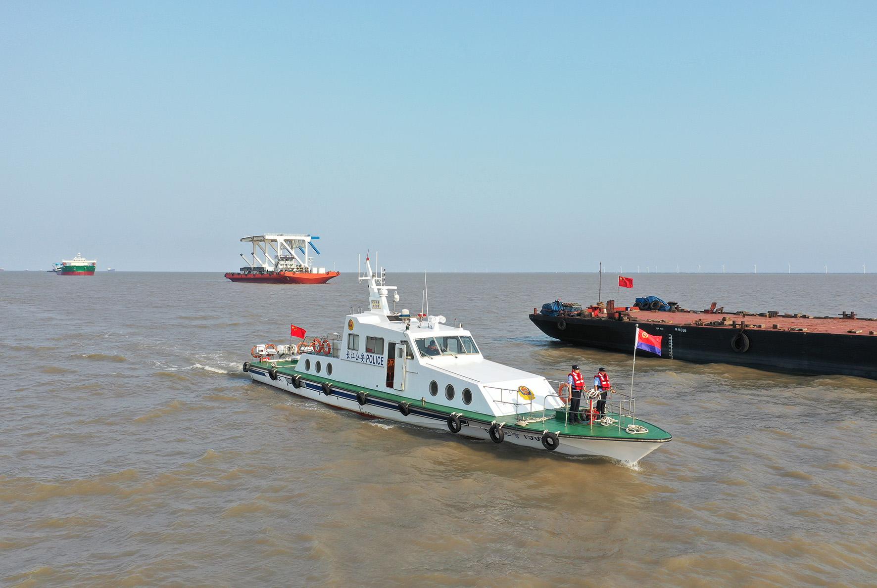 5月29日,長(zhǎng)江航運(yùn)公安局南通分局啟東派出所聯(lián)合啟東海事處、海門航道處、崇明海事處北支執(zhí)法大隊(duì)等單位,前往長(zhǎng)江啟東段崇啟大橋附近水域開展水上聯(lián)合檢查。