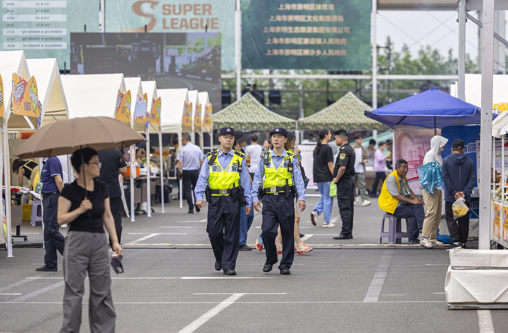 6月8日,上海市公安局崇明分局建設(shè)派出所民警在2025“一帶一路”國際籃球邀請賽賽場外進(jìn)行動(dòng)態(tài)巡邏。