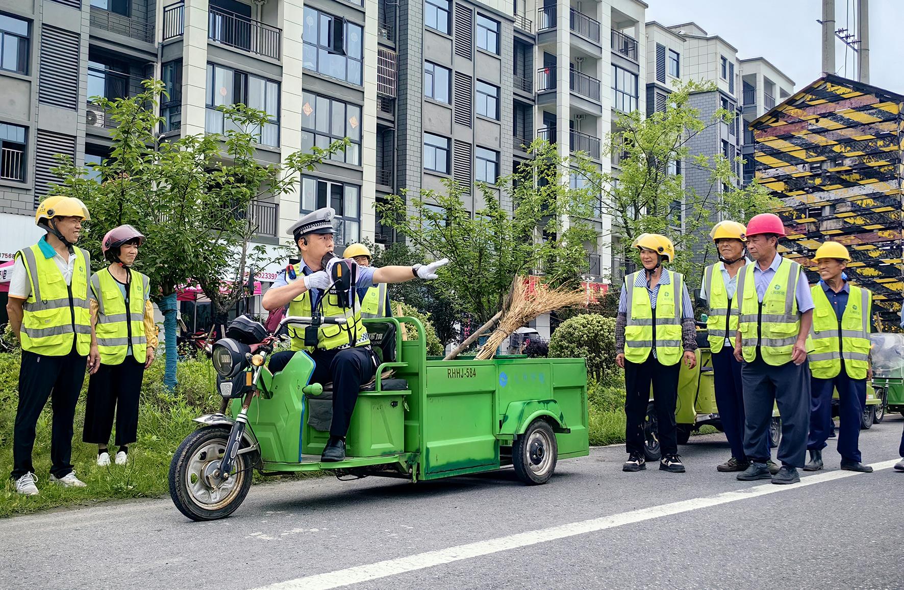 6月11日,安徽省舒城縣公安局交管大隊五顯中隊民警走進五顯街道,向社區(qū)環(huán)衛(wèi)工人現(xiàn)場講解交通規(guī)則及安全防護知識。