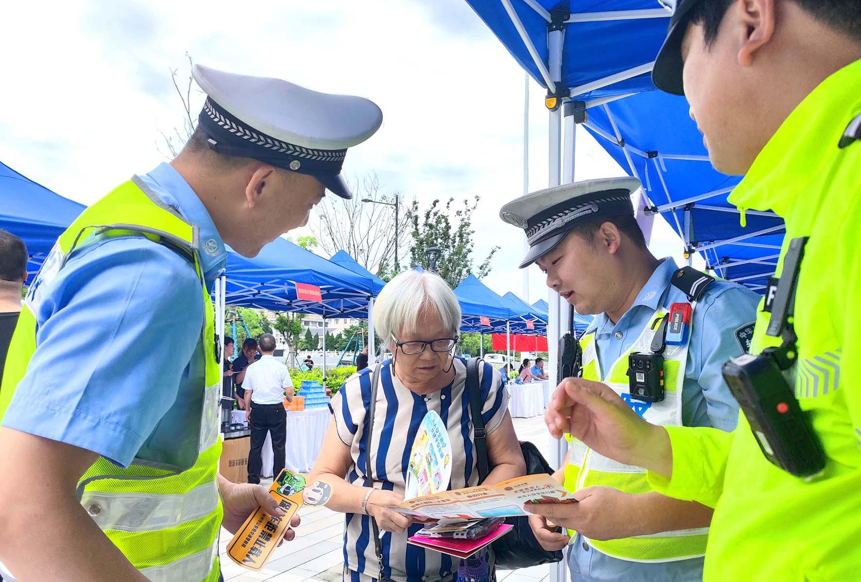 6月16日,浙江省臺(tái)州市公安局交通管理支隊(duì)直屬一大隊(duì)聯(lián)合臺(tái)州市公安局椒江分局在椒江寶龍城“擺攤”向群眾講解交通安全、反詐等安全防范知識(shí)。