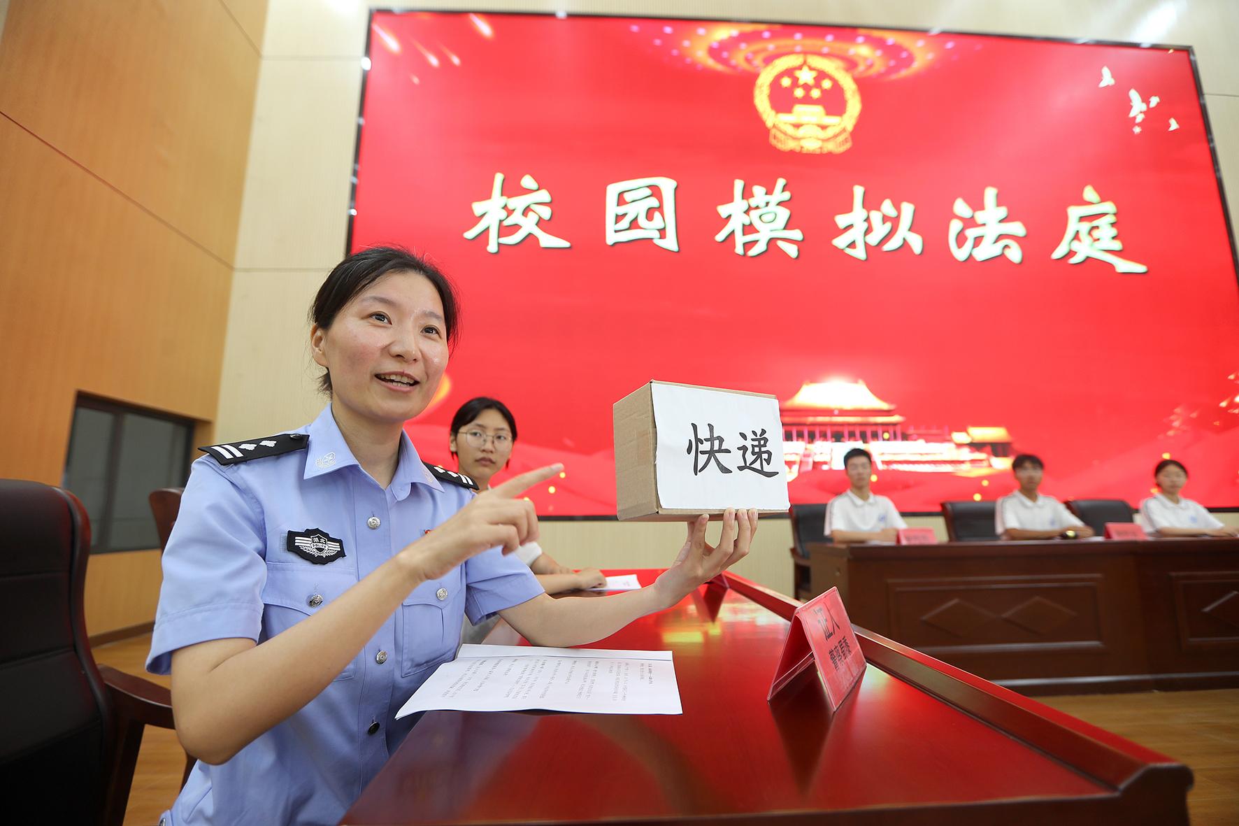 6月17日,在湖北省荊門市沙洋縣職業(yè)技術(shù)教育中心,沙洋縣公安局民警與學(xué)生共同演繹“模擬法庭”庭審現(xiàn)場,通過“情景再現(xiàn)+案例解析”的創(chuàng)新普法模式,為300余名師生帶來一堂生動的禁毒法治教育課。