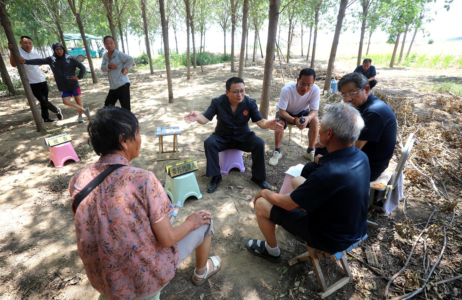 6月17日上午,河南省安陽縣人民法院組織法官深入轄區(qū)高莊鎮(zhèn)田間地頭巡回審理一起土地承包經(jīng)營(yíng)權(quán)糾紛案。其間,法官對(duì)土地現(xiàn)狀進(jìn)行了實(shí)地勘驗(yàn),現(xiàn)場(chǎng)開庭審理,就地組織調(diào)解,以優(yōu)質(zhì)高效的司法服務(wù)把糾紛解決在群眾“家門口”。