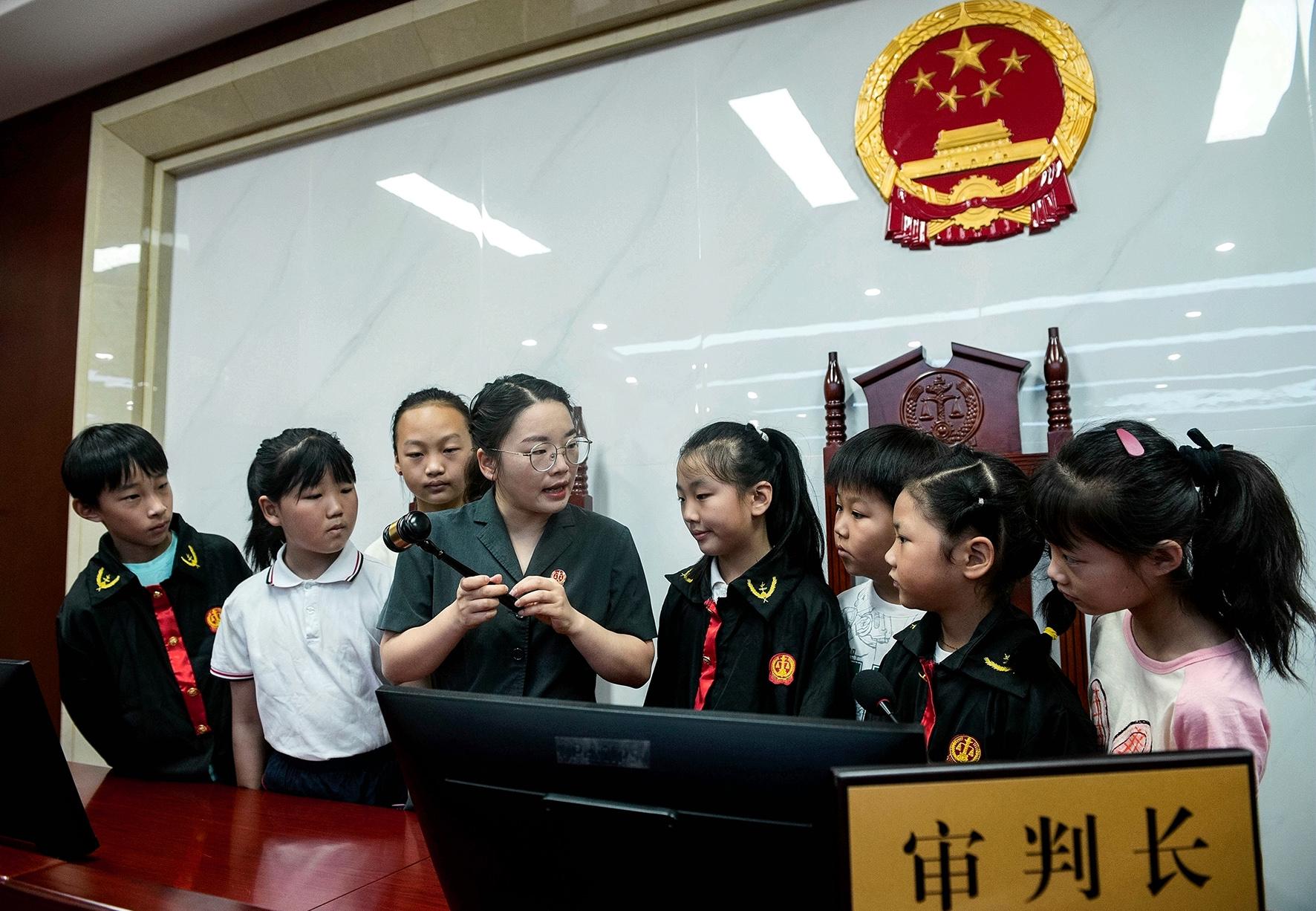 7月22日,安徽省含山縣司法局、含山縣青年志愿者協(xié)會組織“愛心課堂”的孩子們走進(jìn)含山縣人民法院,開展模擬法庭活動。