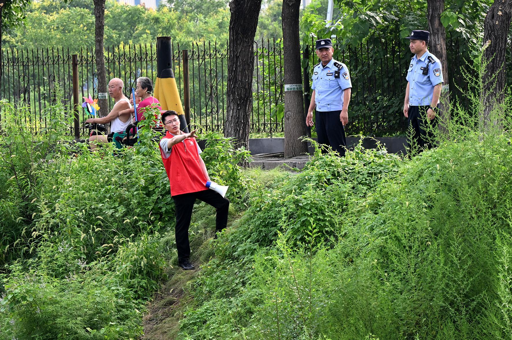 8月4日,懷柔區(qū)北房鎮(zhèn)政法委員孟德輝與北房派出所民警前往河道兩側,對高危點位進行研判、布控。