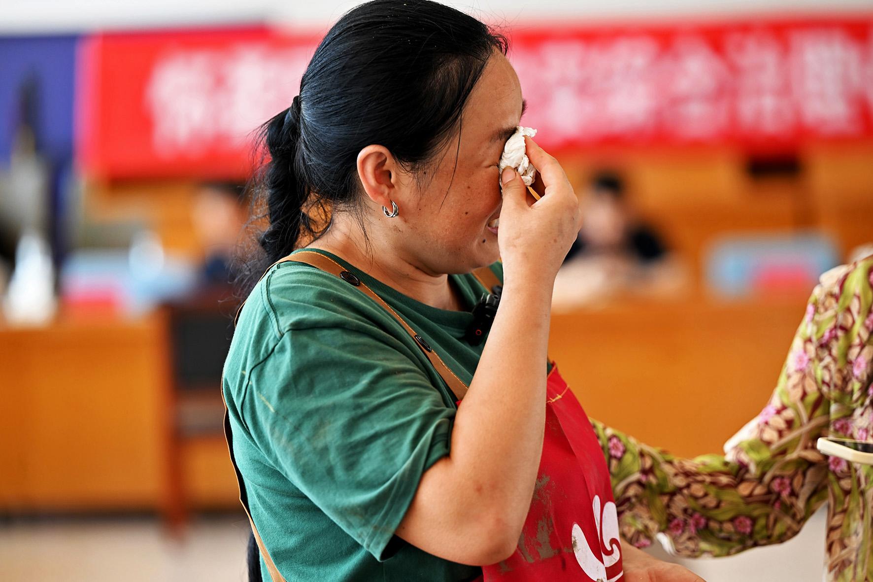 8月6日,琉璃廟鎮(zhèn)村民王磊返回家園后第一時間來到臨時“綜治中心”,向工作人員哭訴著受災情況。