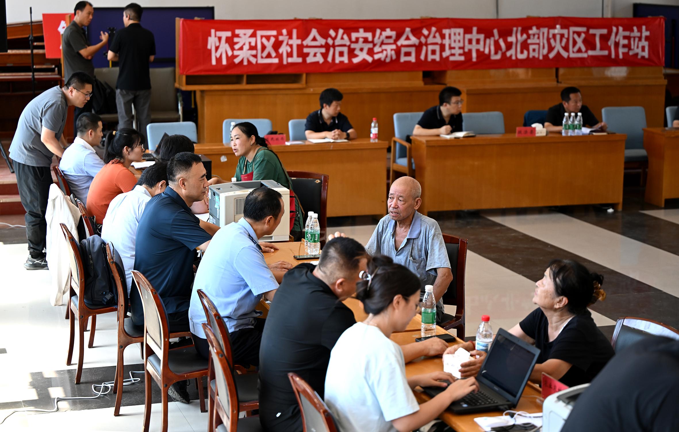 “回村一下車,沒想到有這么多政府部門的工作人員在這兒,看到他們,心里就不慌了。”8月6日,剛從北京市懷柔區(qū)轉移安置點返回家園的村民孫大媽感慨。與孫大媽一同“抵達”的,還有一家臨時“綜治中心”,在當天正式運行。此前,懷柔區(qū)依托綜治中心機制模式,在受災嚴重的琉璃廟鎮(zhèn)成立了由區(qū)委政法委牽頭、多部門協(xié)同聯(lián)動的政策咨詢服務中心,向前一步主動服務受災群眾。