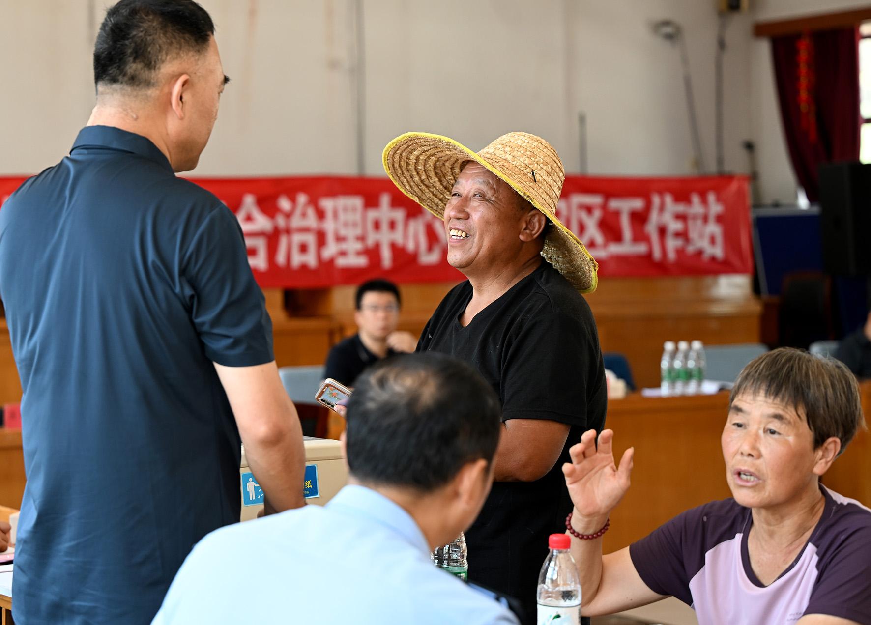 8月6日,臨時“綜治中心”秩序井然,懷柔區(qū)人民法院、北京市公安局懷柔分局、懷柔區(qū)司法局、懷柔區(qū)農業(yè)農村局等職能部門窗口的工作人員都耐心回應著村民的每一個訴求。