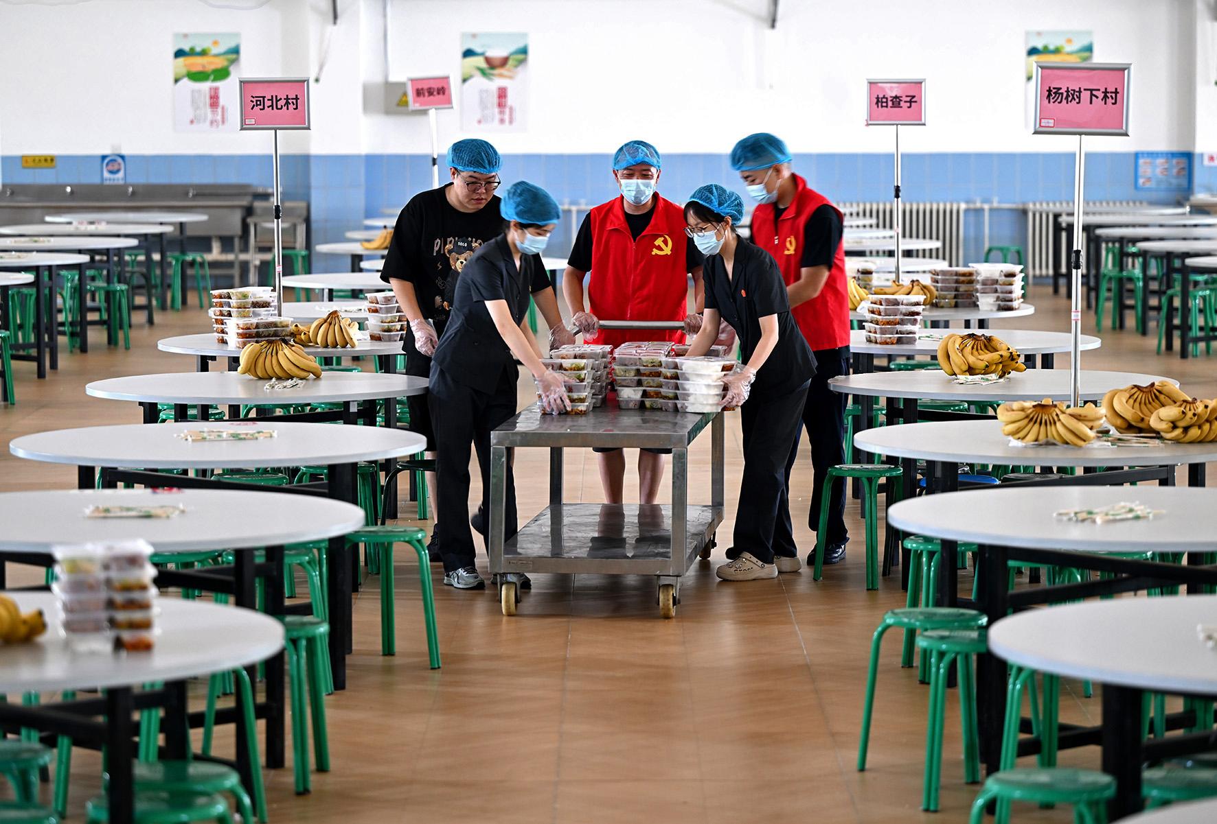 8月4日,懷柔區(qū)人民法院防汛小分隊在學生軍訓基地安置點負責村民一日三餐的分配保障任務。