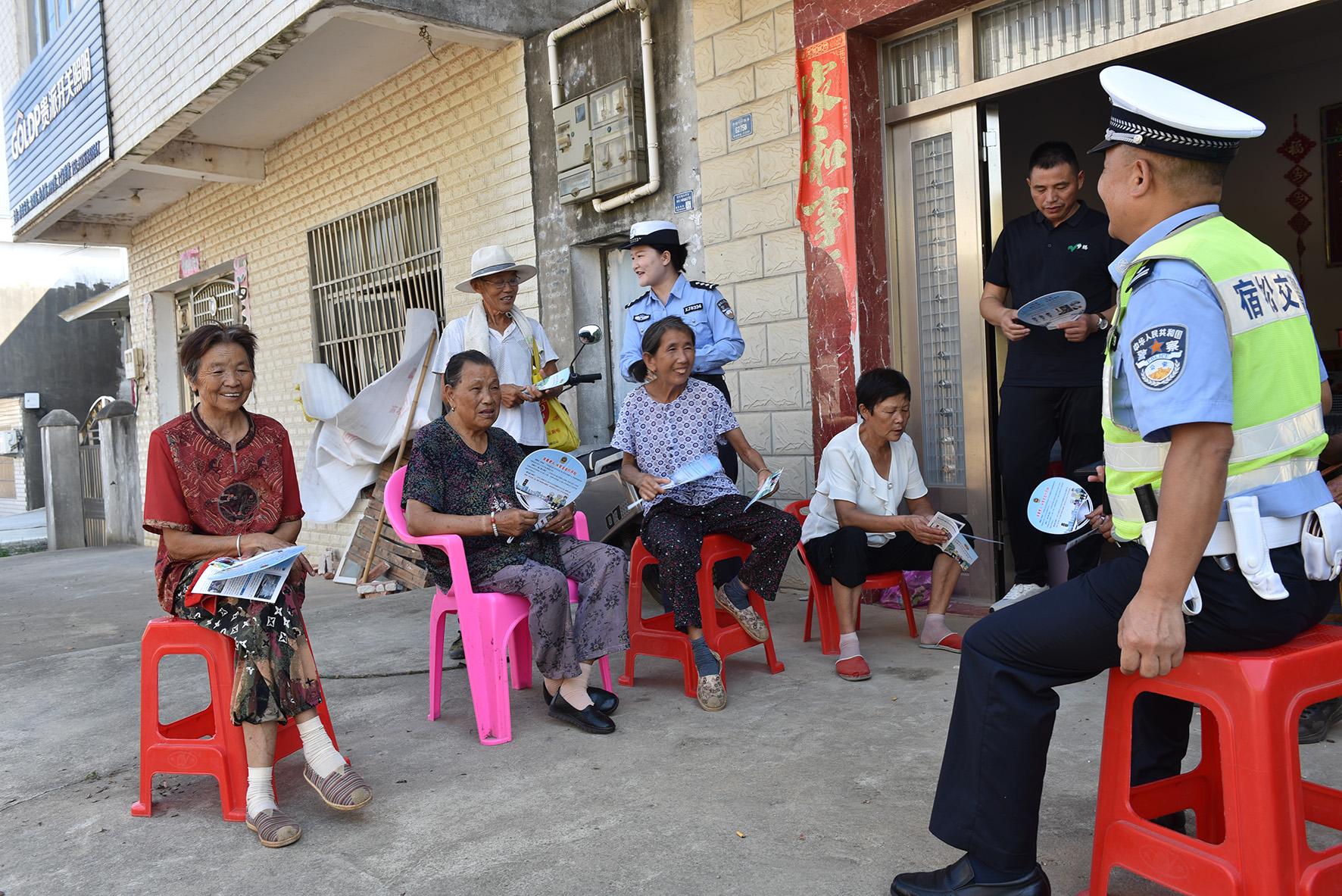 9月5日,安徽省宿松縣公安局交通管理大隊民輔警通過“小課堂”向公路沿線村民開展交通安全提示。