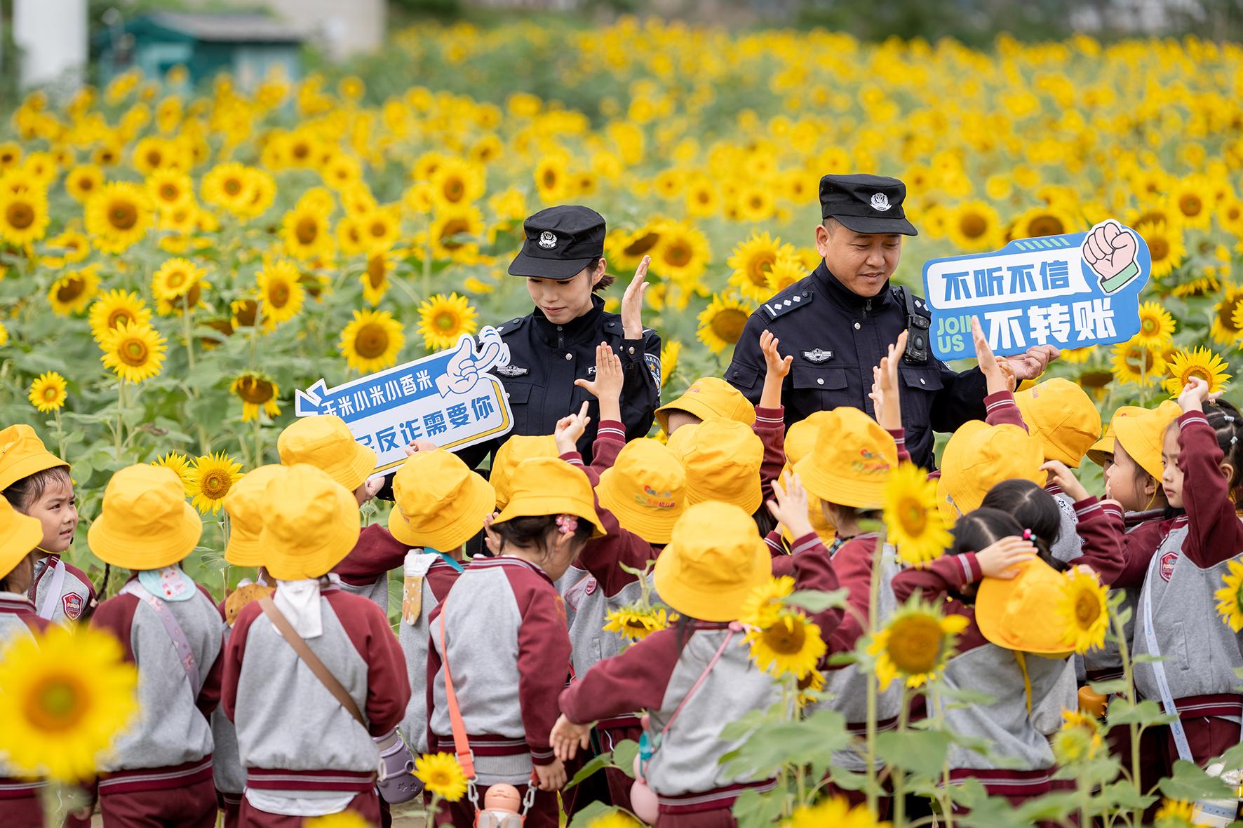 10月17日,四川省綿陽市公安局游仙分局石馬派出所民警在游仙區(qū)紅巖電站涪江畔向小游客們講解防范電信網(wǎng)絡(luò)詐騙知識。