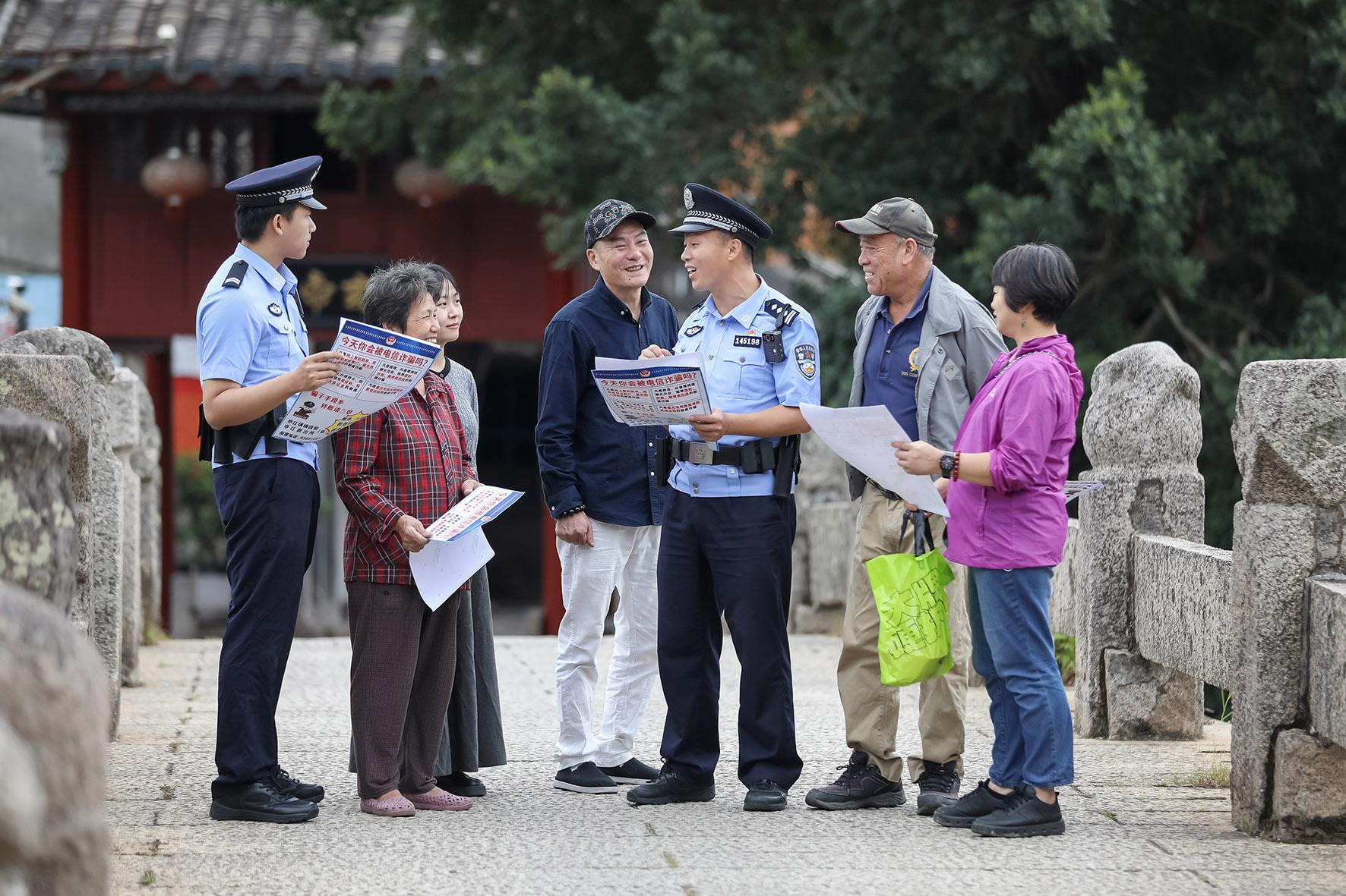 10月23日,福建省福州市公安局馬尾分局亭江派出所民警在亭江鎮(zhèn)千年古橋——迥龍橋開展安全防范知識(shí)宣傳。