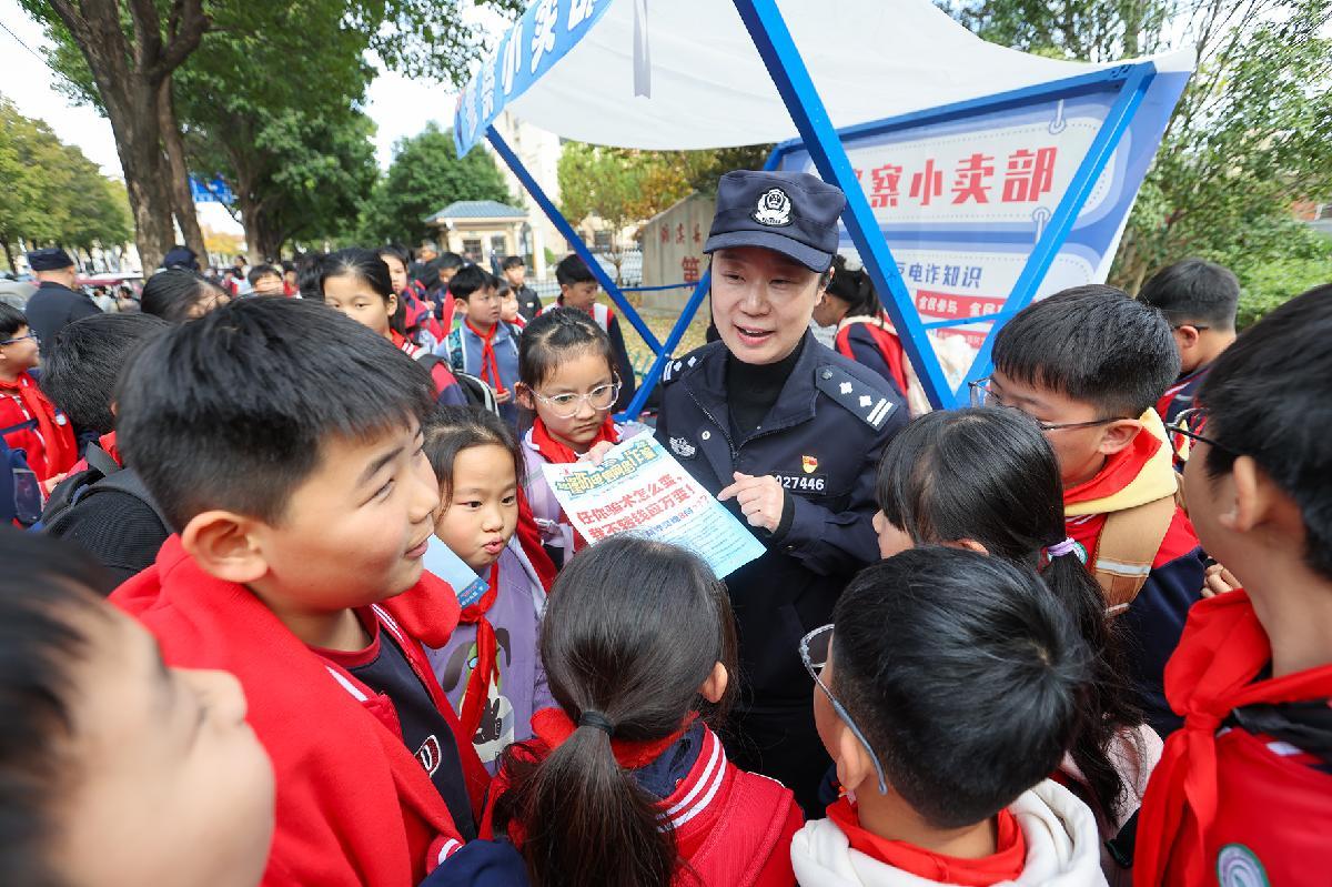 11月11日,安徽省濉溪縣公安局組織民輔警走進(jìn)學(xué)校開展反詐宣傳。