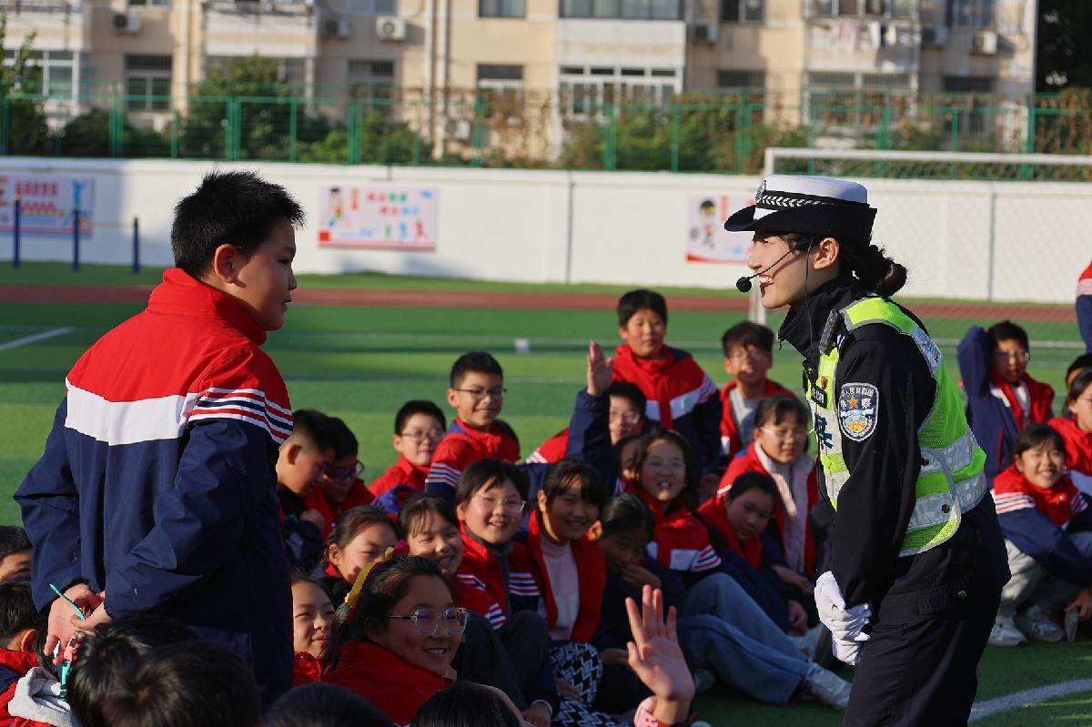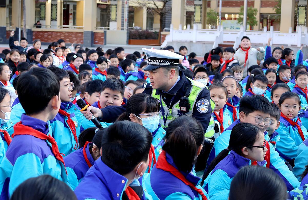 11月28日,安徽省巢湖市公安局交警大隊民輔警走進(jìn)校園開展交通安全宣傳。