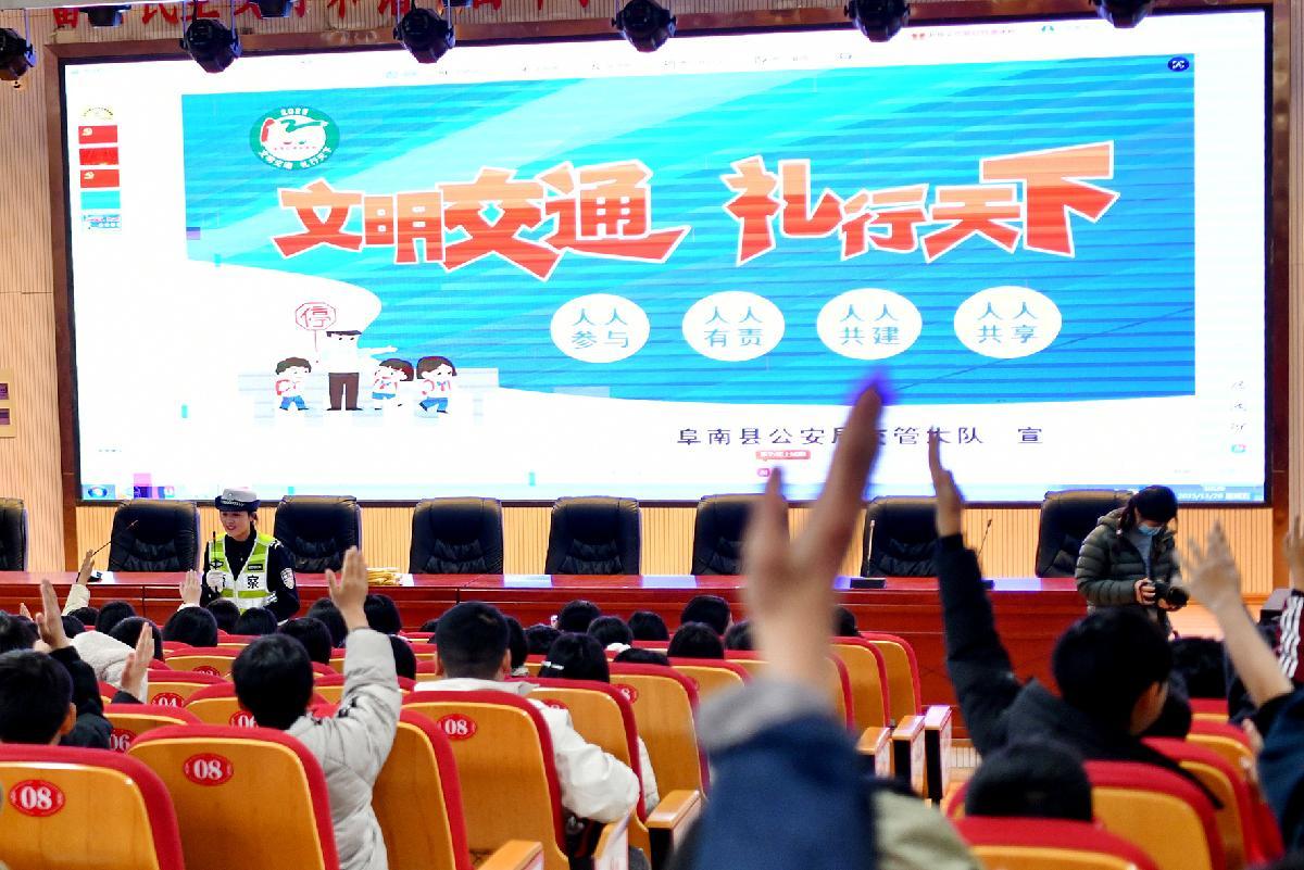 11月28日,在第十四個“全國交通安全日”來臨之際,安徽省阜南縣公安局交管大隊組織民警輔警走進(jìn)轄區(qū)中心學(xué)校開展“文明交通 禮行天下”主題宣傳。