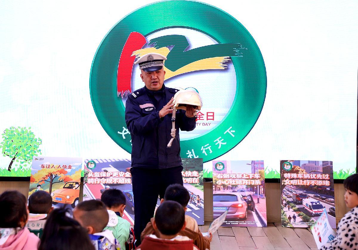 12月1日,貴州省丹寨縣公安局交通警察大隊民警走進(jìn)轄區(qū)第二幼兒園開展“文明交通 禮行天下”交通安全宣傳。