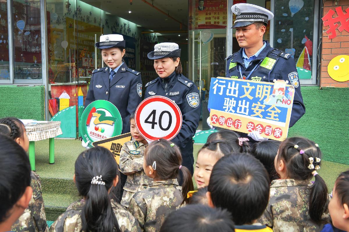 12月1日,江蘇省如皋市公安局交警大隊如城中隊民警來到光華幼兒園,以寓教于樂的方式開展全國交通安全日宣傳。