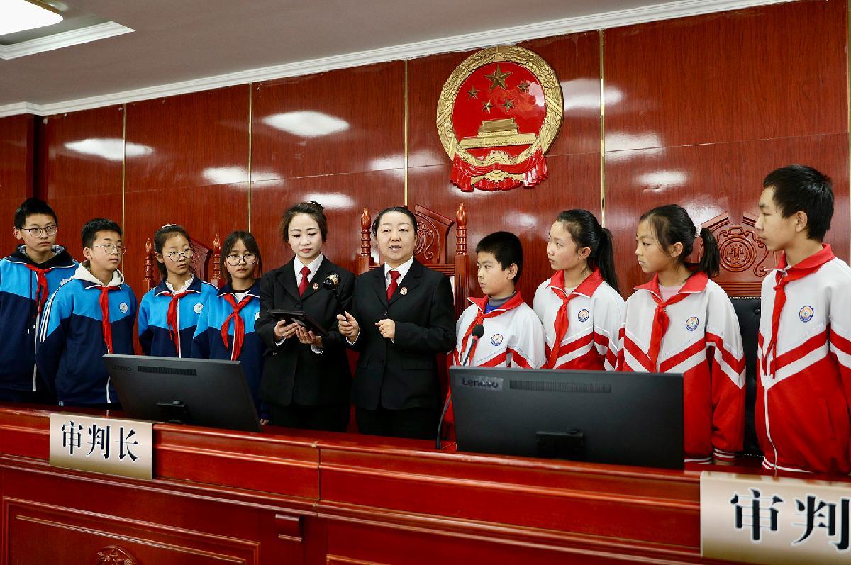 12月4日,青海省西寧市湟源縣東峽鄉(xiāng)中心學校、大華鎮(zhèn)池漢學校學生走進縣人民法院“小禾大夢”未成年人法治教育基地,沉浸式學習法律知識。