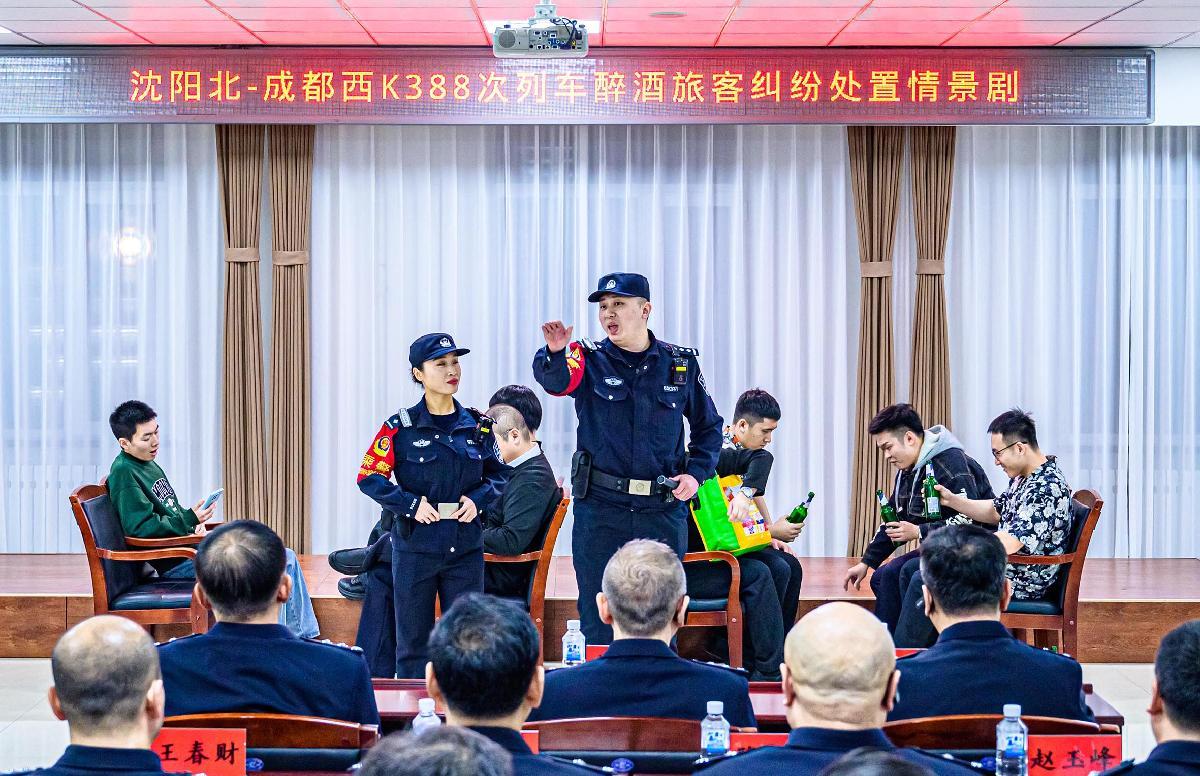 圖為12月15日,沈陽鐵路公安局組織民警現(xiàn)場觀摩旅客糾紛處置情景劇。