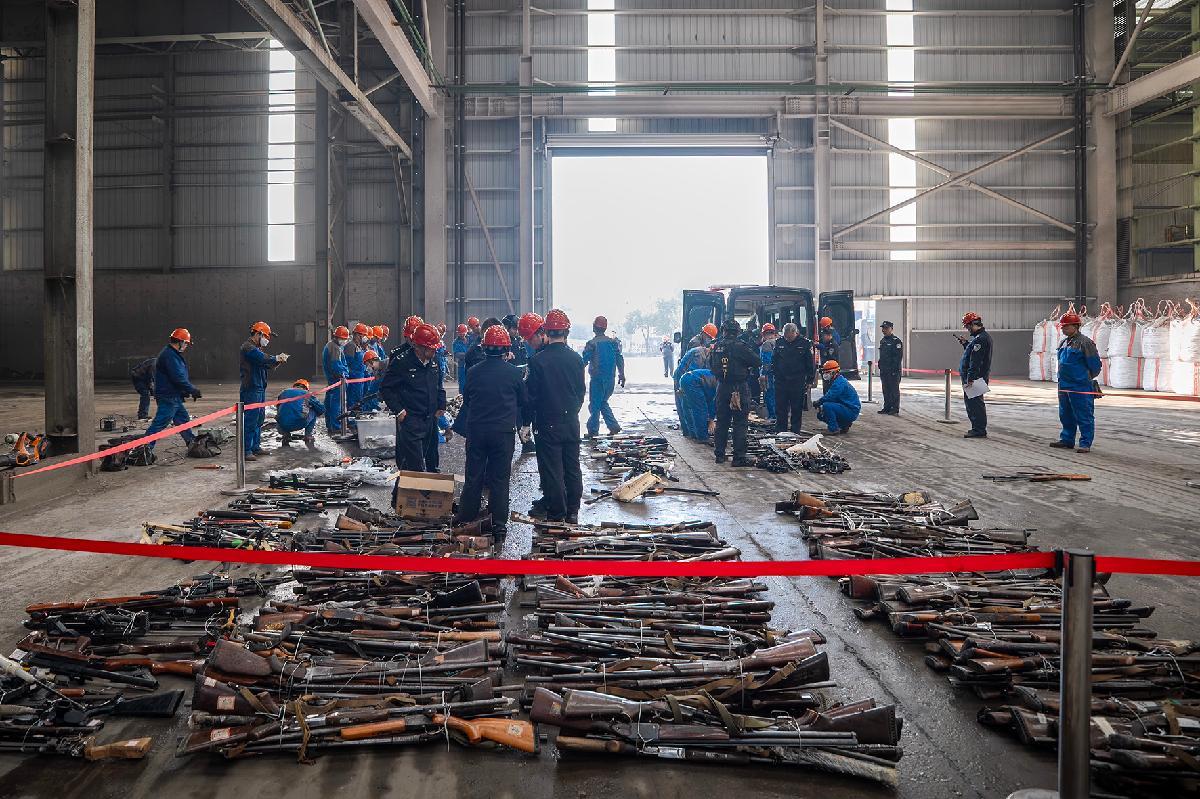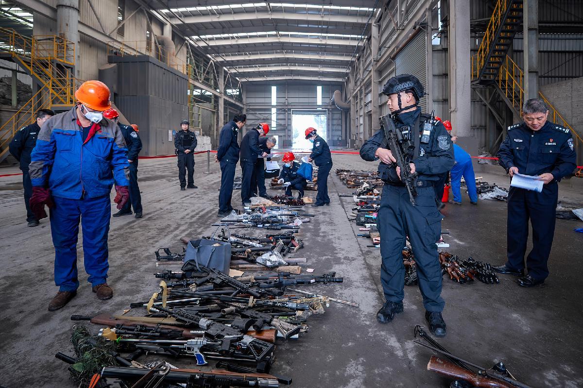 12月20日,浙江省湖州市公安局組織開展全市公安機(jī)關(guān)集中銷毀非法槍爆物品及管制刀具活動(dòng)。