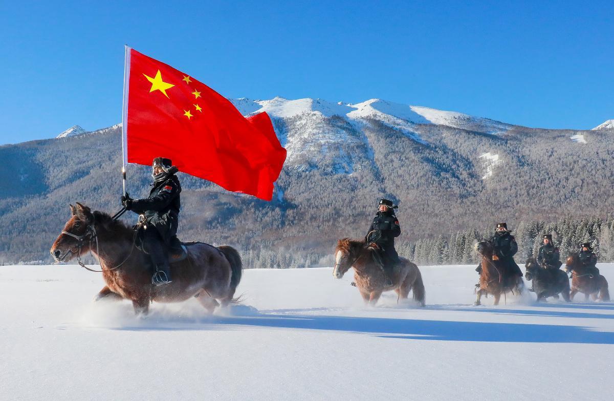 1月15日,新疆出入境邊防檢查總站阿勒泰邊境管理支隊喀納斯邊境派出所馬隊巡護隊冒著零下47℃的嚴寒,對重要山口要道、游客集中區(qū)域開展巡邏踏查。