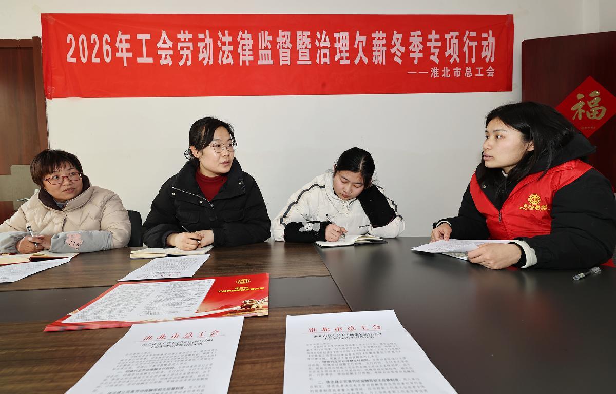 1月22日,安徽省淮北市總工會組織工會勞動法律監(jiān)督員深入相山經(jīng)濟(jì)開發(fā)區(qū)重點(diǎn)企業(yè),開展2026年工會勞動法律監(jiān)督暨治理冬季欠薪專項行動。
