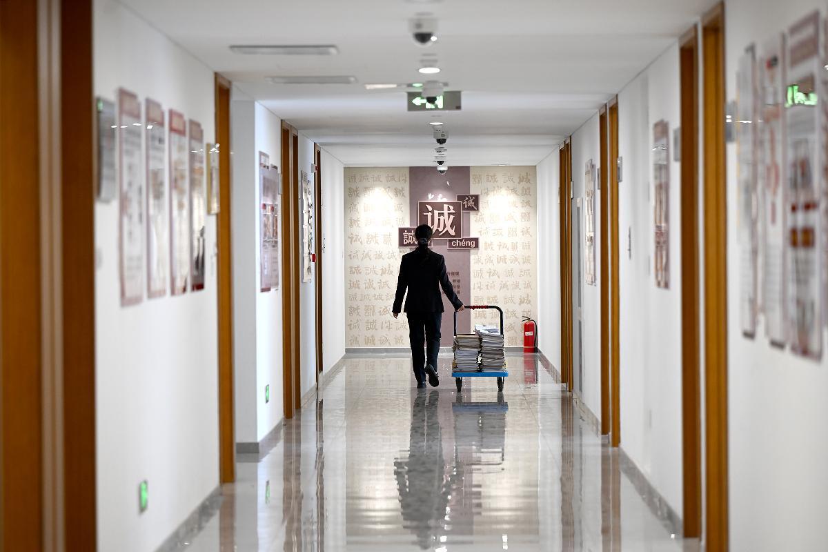 2025年12月23日,北京市朝陽區(qū)人民法院望京法庭法官助理劉柳把新收案件的卷宗材料及時分派給法官。