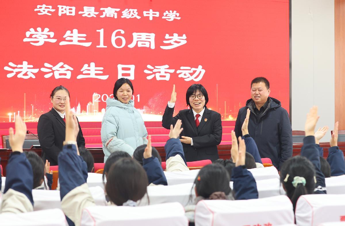 1月23日上午,河南省安陽(yáng)縣人民法院組織干警走進(jìn)安陽(yáng)縣高級(jí)中學(xué)開展“16周歲‘法治生日’專題講座”普法宣傳。